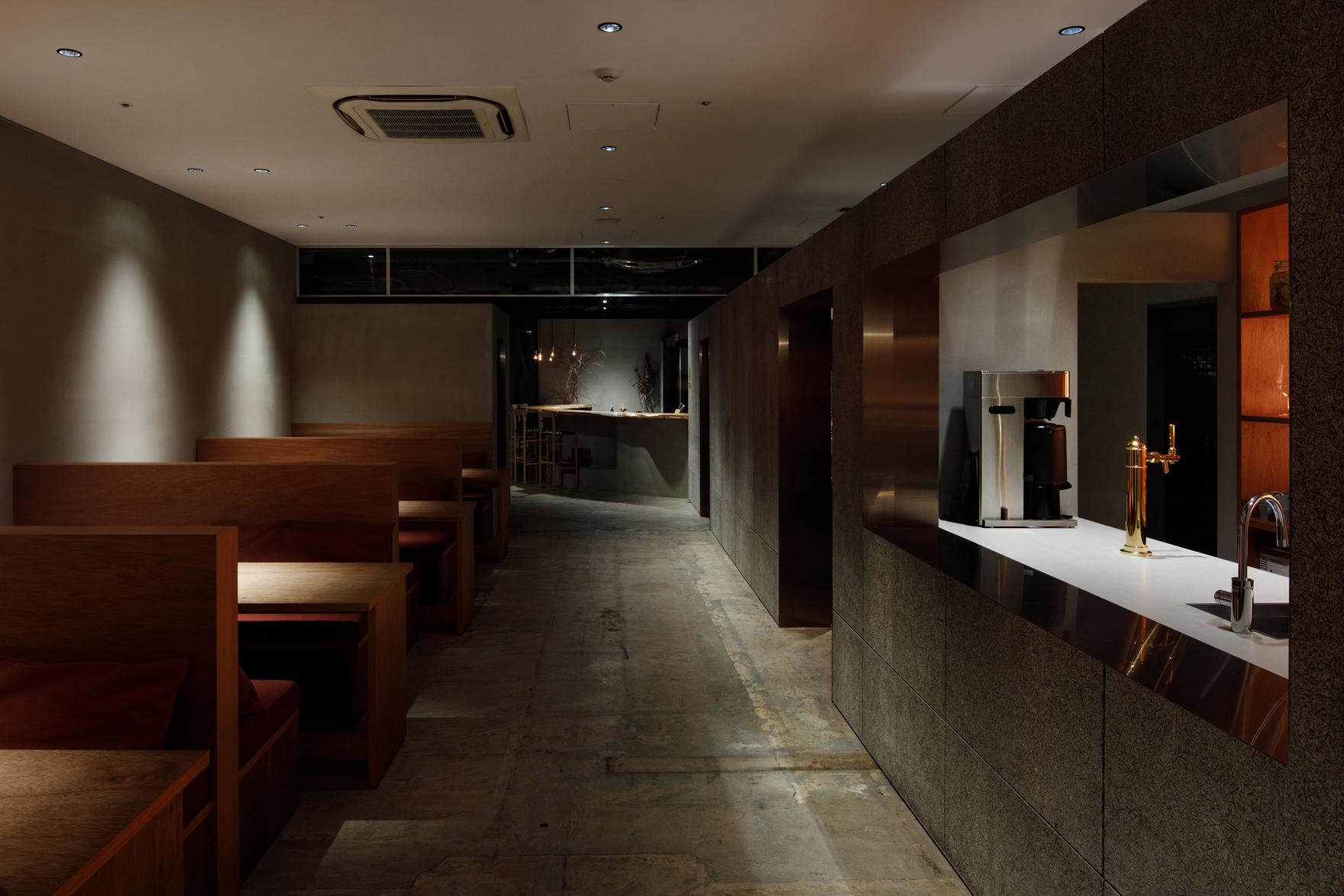 百貨店の大規模リノベーションによる飲食店プロジェクトです。2店舗同時出店によるオペレーションコストを削減するため、両店舗のあいだにスタッフ動線とバックヤードを集約し、効率的な平面計画としました。