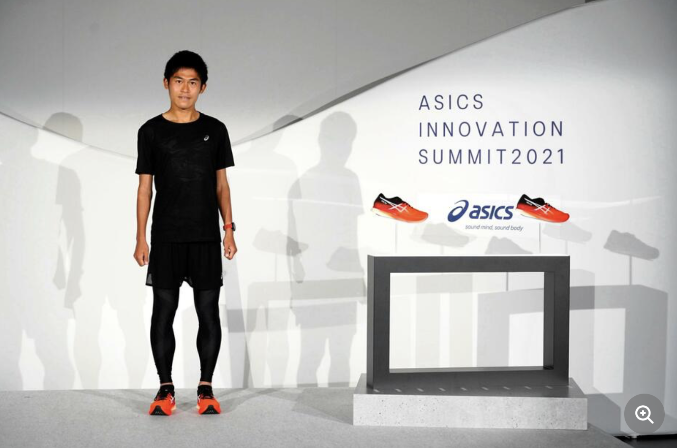 “パーソナライゼーション”の取り組みを紹介するイベント“アシックスイノベーションサミット2021”を開催し、ストライド型、ピッチ型の走法に応じてそれぞれ設計したトップランナー向けランニングシューズ