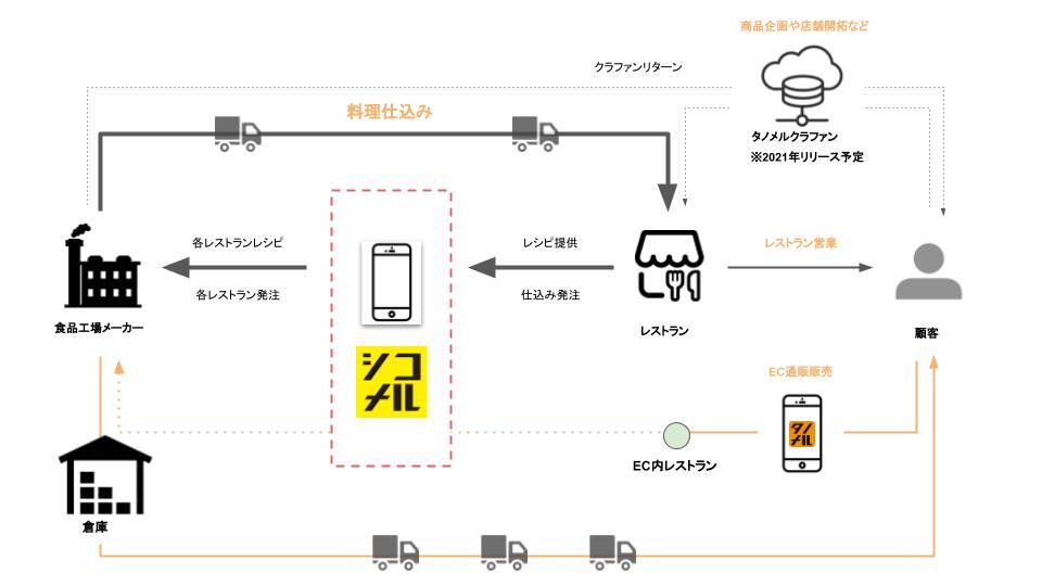 『シコメル』では仕込み済み商品を仕入れることで、提供される料理品質の担保の他、人件費の削減など業務効率化にも貢献します。主な機能は、有名店等のレシピを元に再現した仕込み済み商品などが発注できる「シコメルストア」と各店のオリジナルの商品を発注できる「マイストア」、仕入先を一元管理ができる「受発注機能(β版)」で、飲食店はアプリ上で発注や決済管理が可能となります。今後は、工場側の管理機能の充実や複数店舗の管理、レシピ管理、倉庫在庫管理などの機能拡充を予定しています。