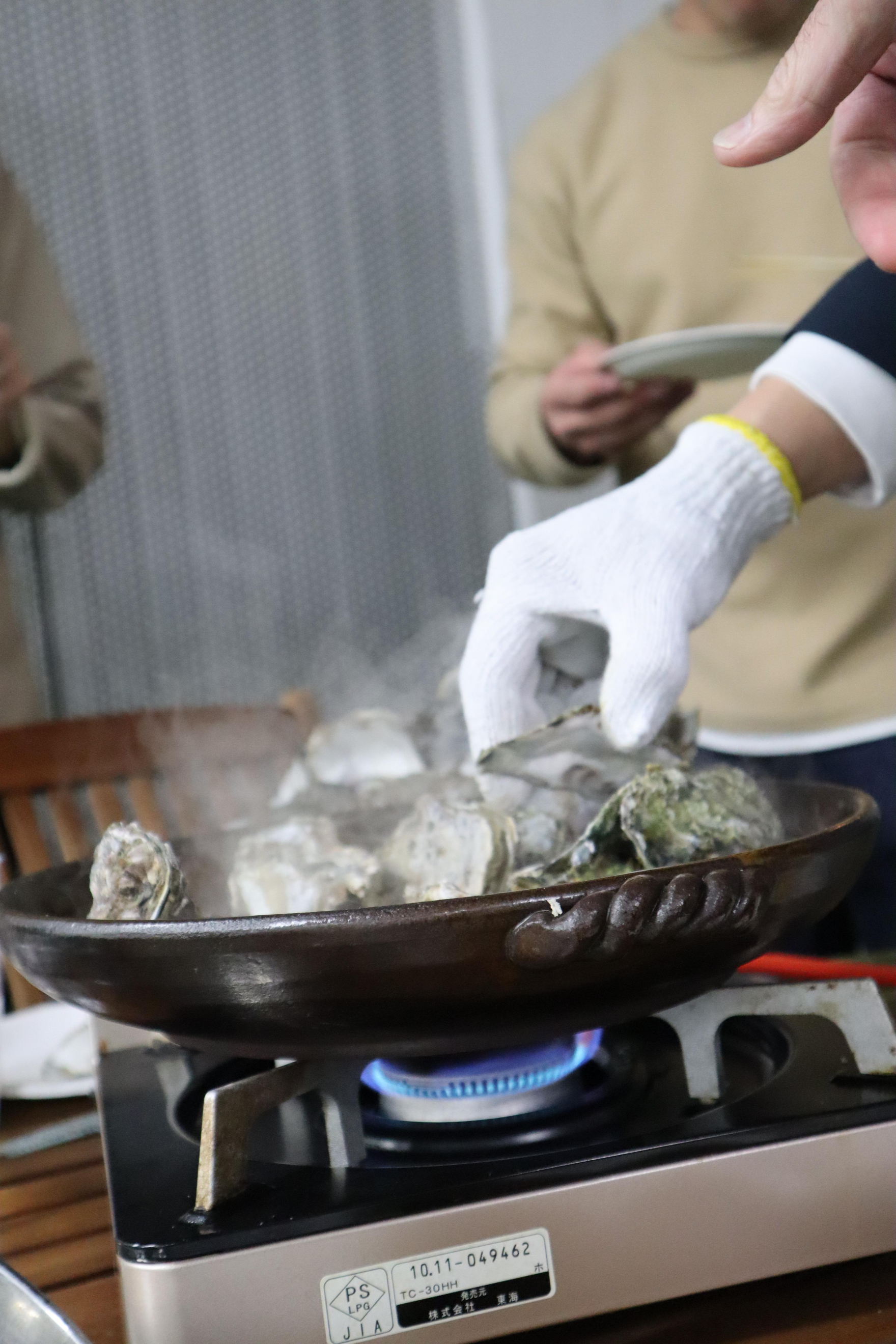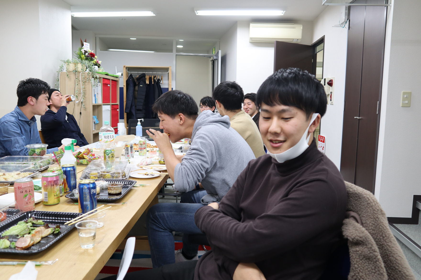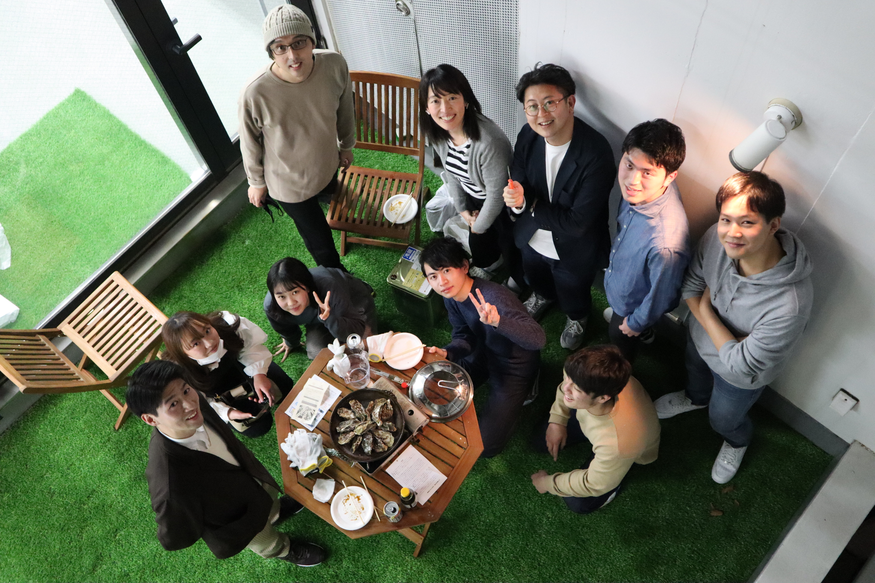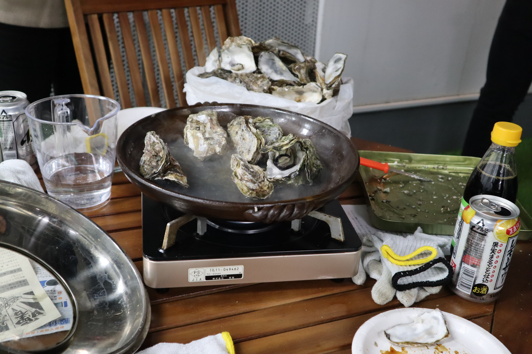 準備できた新オフィスにて、オフィス移転時の恒例で的矢牡蠣の陶板焼きをメインに、各種オードブルを囲んで納会を行いました。