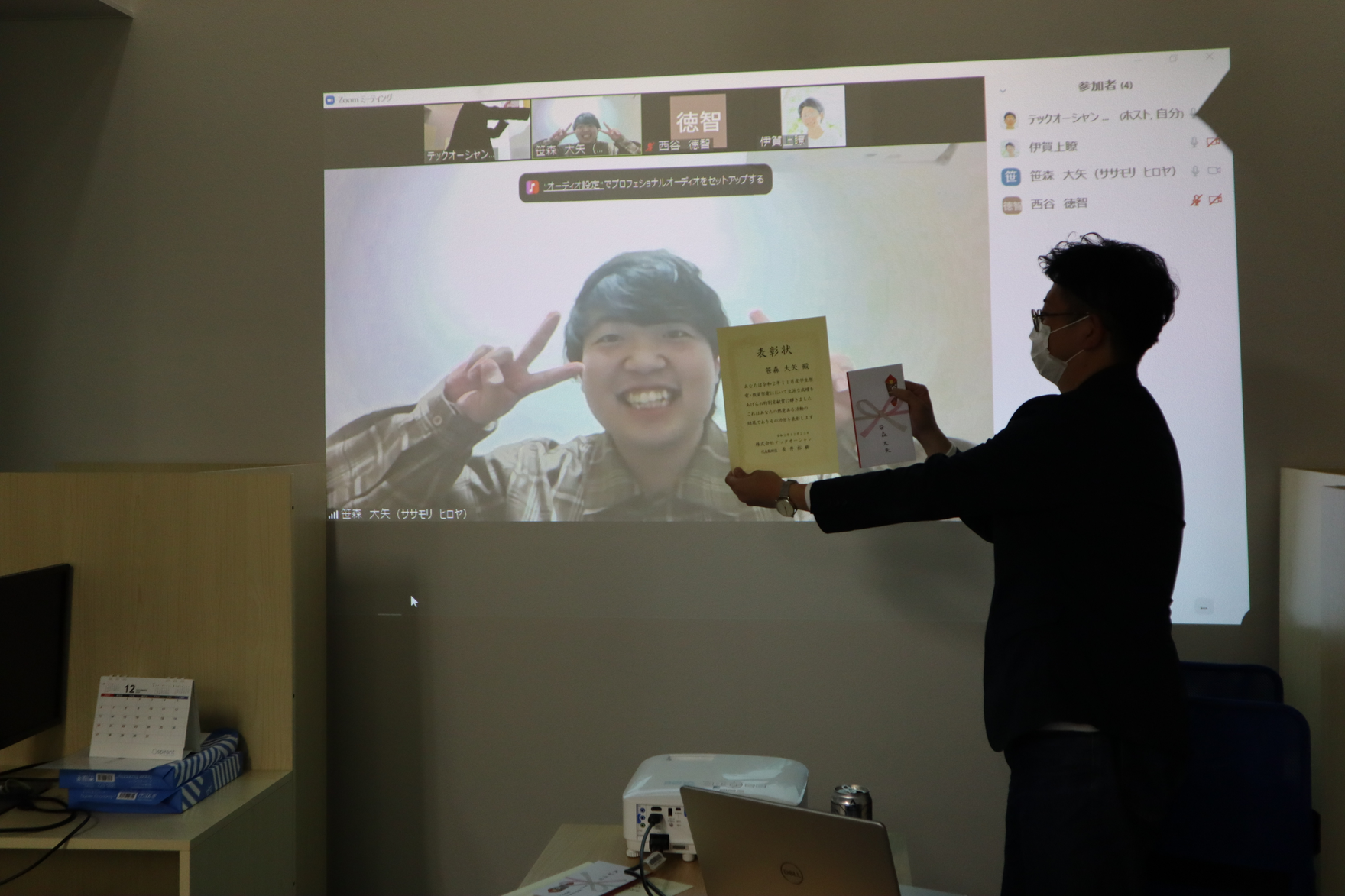 リモートワークスタートの年になり、それらしく、リモートでの表彰式も!