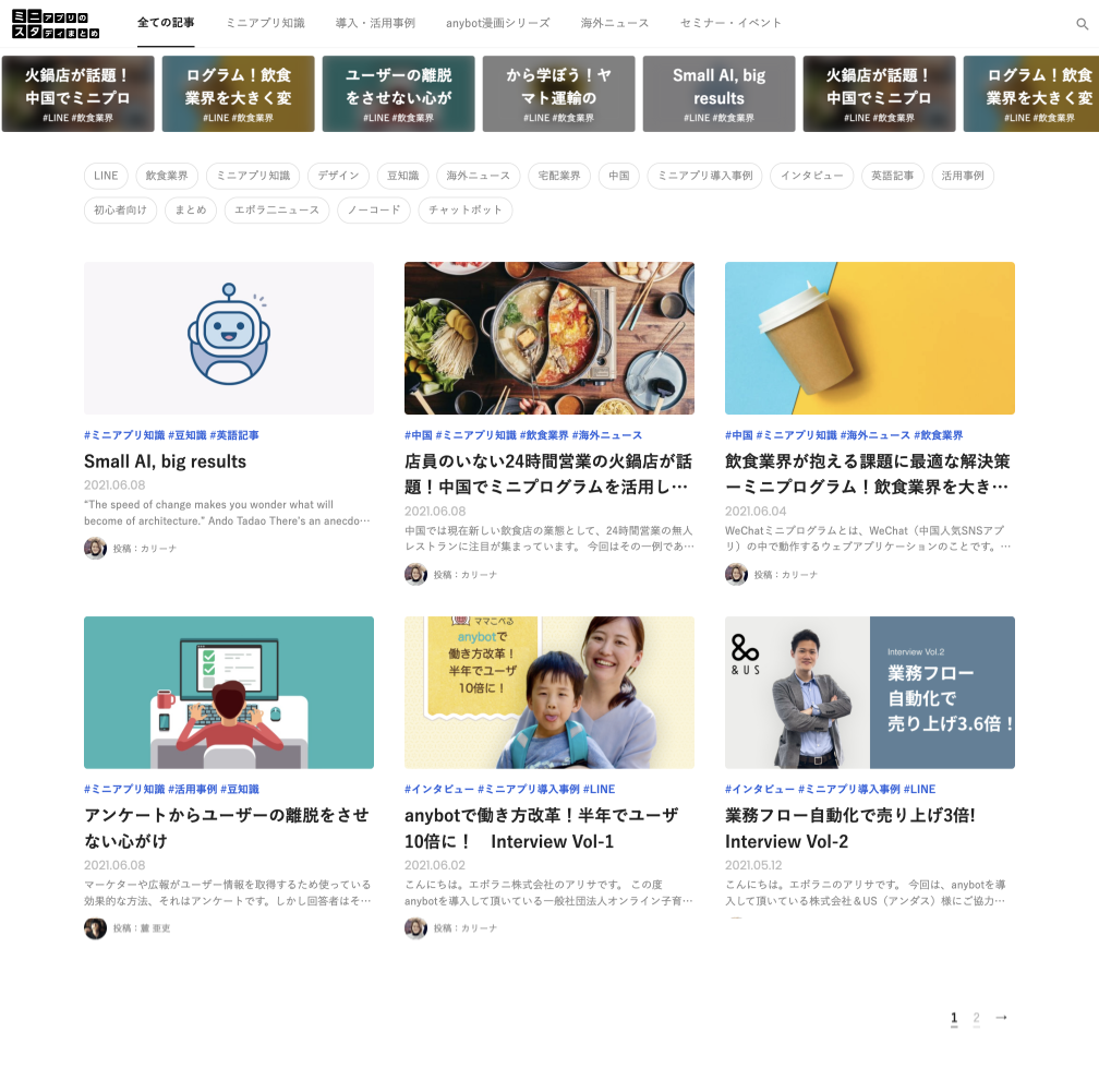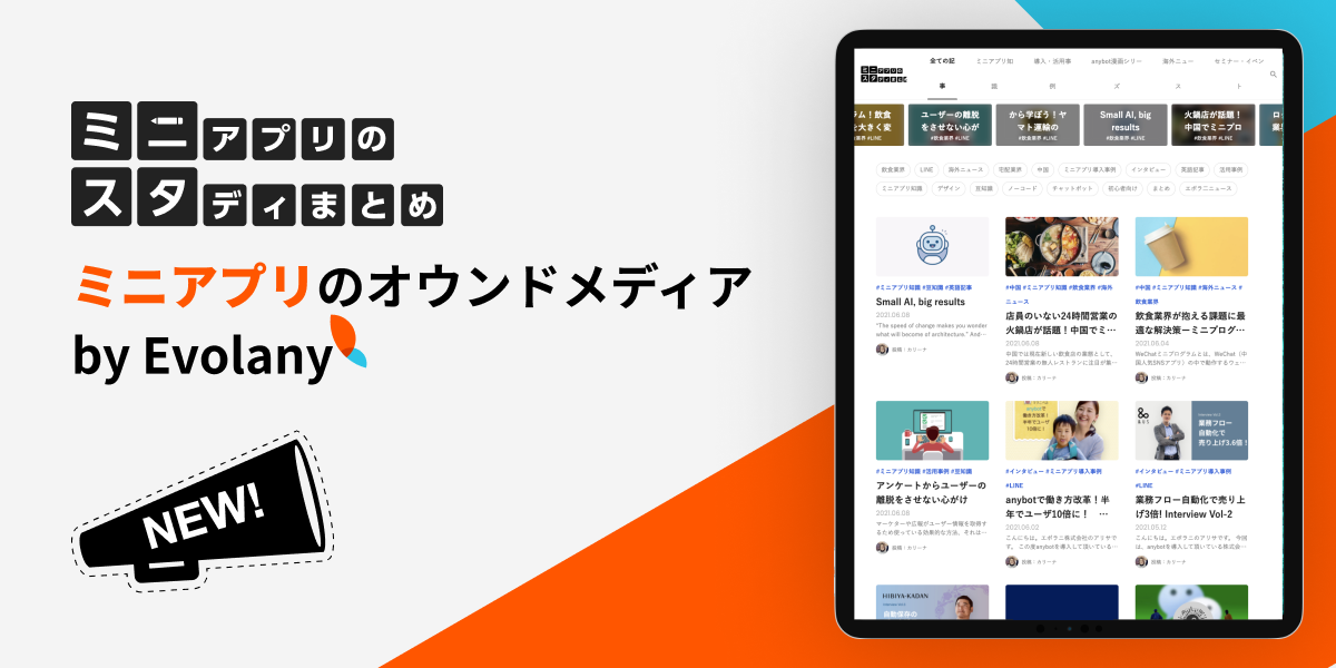 当社のオウンドメディアでは、今後成長が予測されるミニアプリ市場の「今」と「未来」を事例を交えながら情報を発信します。ミニアプリの概要にとどまらず、使い方、ナレッジについてもシェアすることで、よりミニアプリに対して親近感と具体的なイメージを持っていただけるサイトです。