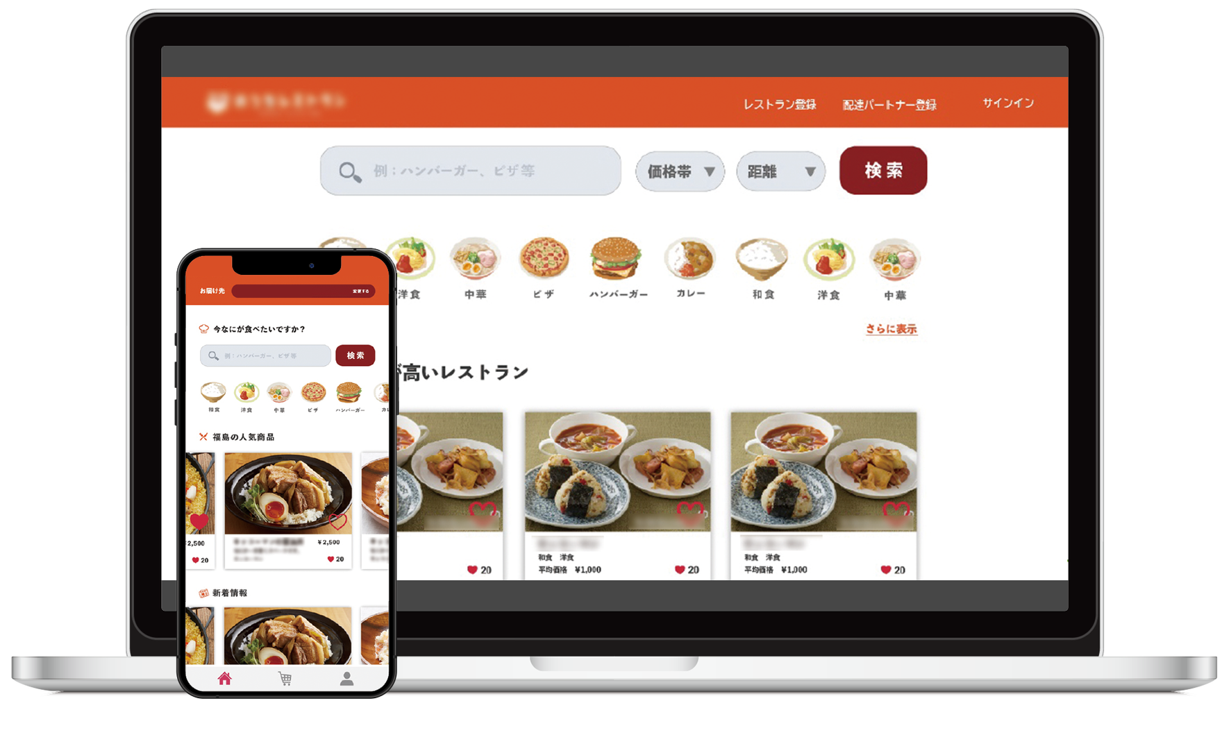 スマートフォン、タブレットから飲食店注文できるフードデリバリーシステムを開発しました。