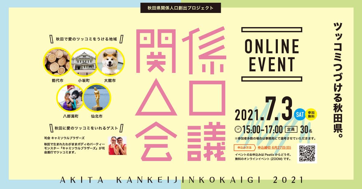 関係人口という言葉が巷に溢れかえるのを尻目に、秋田にツッコミをいれまくってきたアソビナカマたちをゲストに、秋田にもっとツッコミたくなる会を開催します。