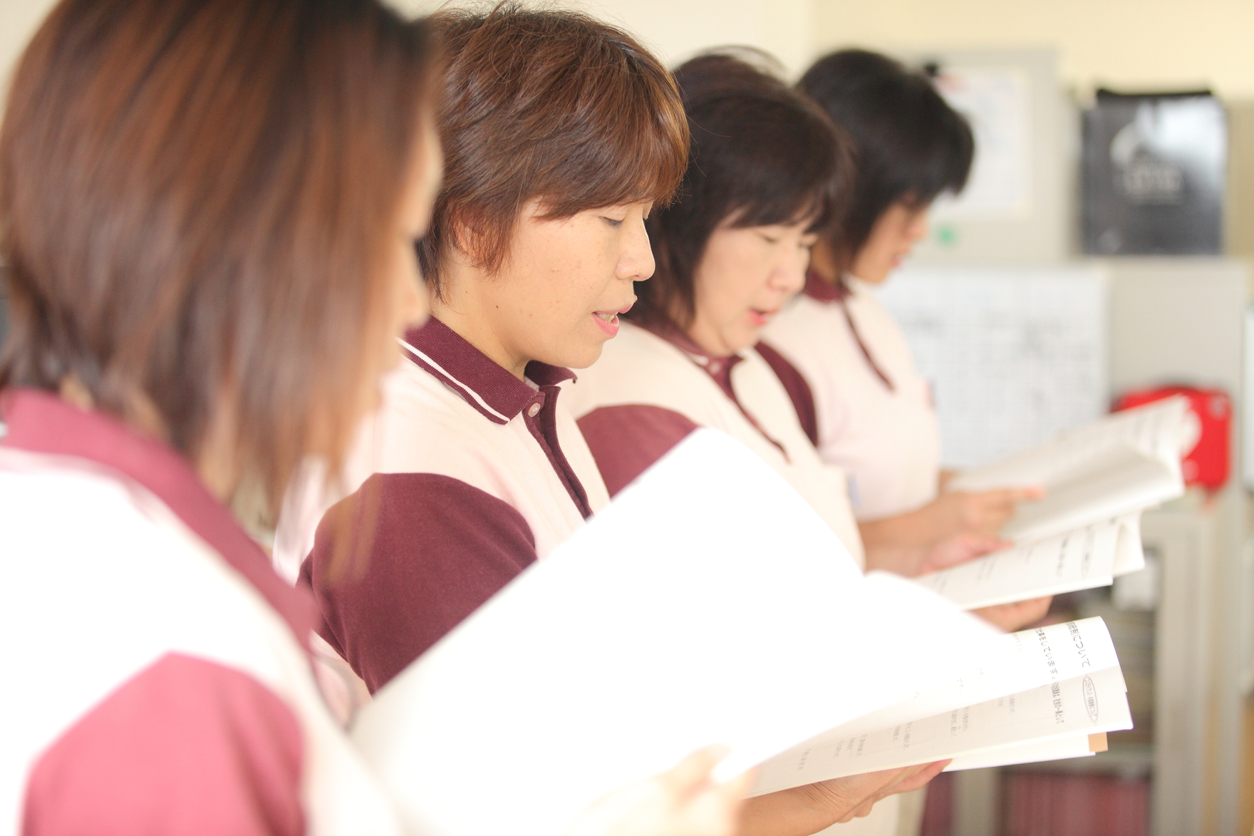 毎朝、朝礼で朗読をし、お客様に意識を向けるスイッチを入れます。