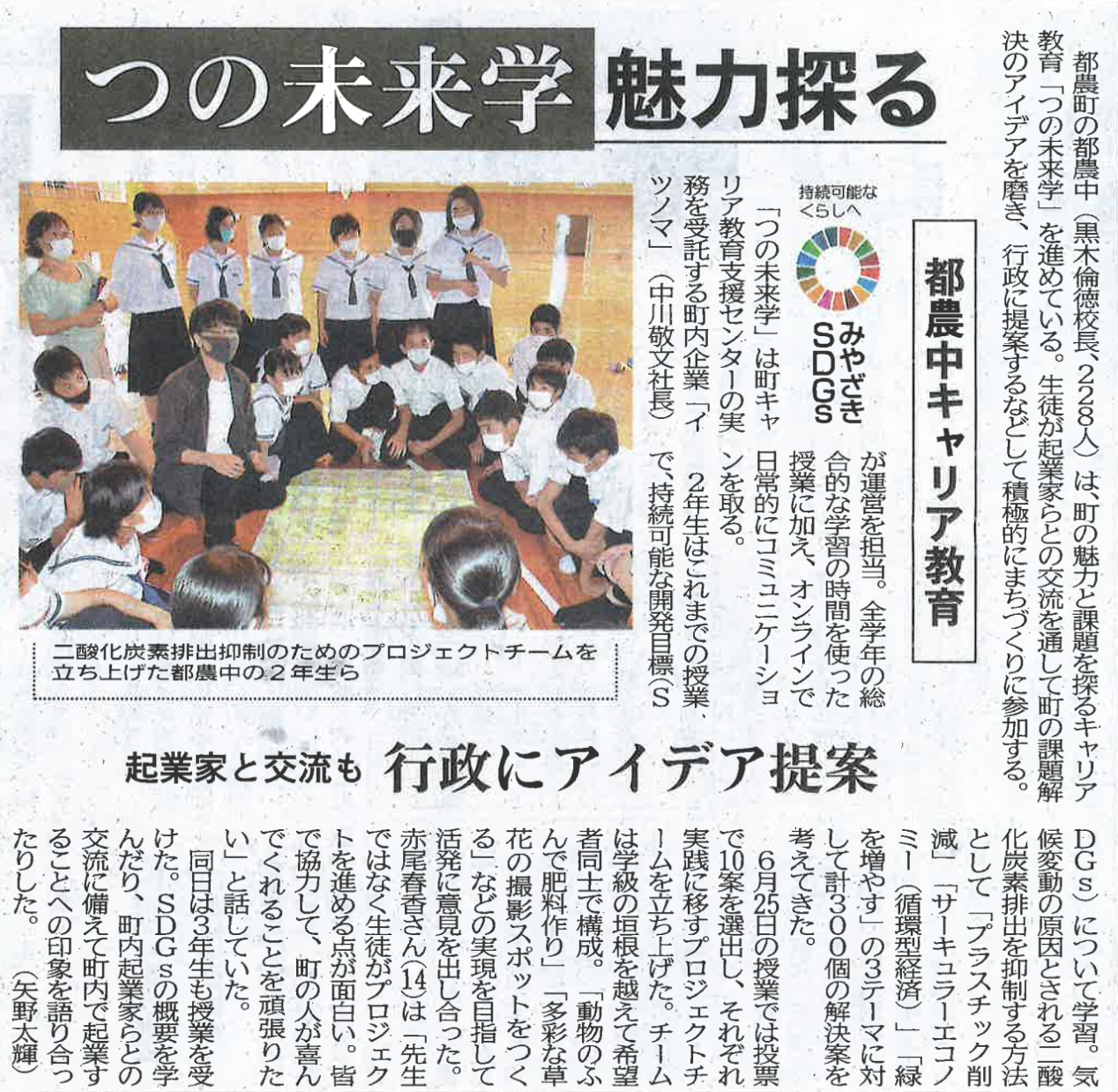 都農町に限らず、地方の1万人の規模の町では、中高生全員が都心の大学や企業に行くわけではありません。