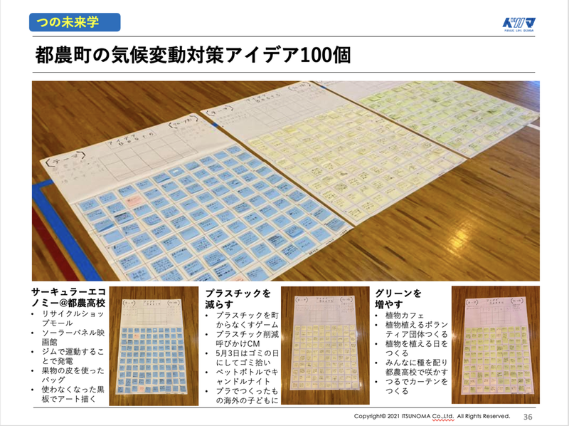 今年は、具体的に4月から総合学習の時間を使って年間15時間のプログラム「つの未来学」と、職場体験プログラム「つのワク」を中心に、学生たちと接点が増えたため、昨年よりリアルな提案。