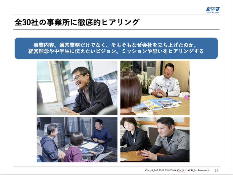 都農町の場合、面白かったのは、事業所同志、ほとんど知り合いなので、他社が何を言ってたのか?健全なライバル意識が働き、結果的に他社にはない独自のメッセージをいただけました。