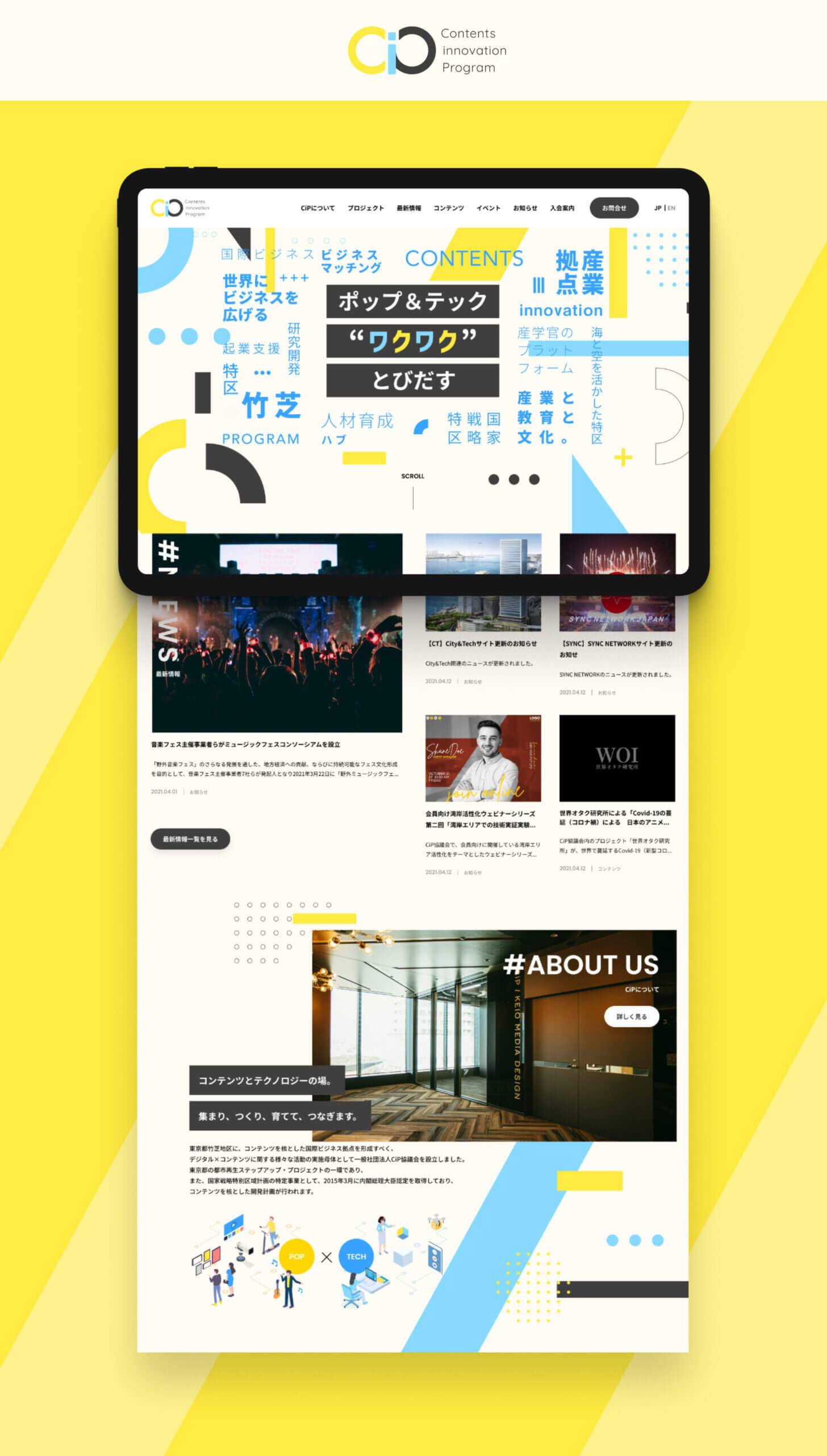 一般社団法人CiP協議会様は、2015年4月に設立された「コンテンツ×テクノロジー」産業の拠点を形成する活動母体です。ポップ&テックの集積特区を形成し、研究開発、人材育成、起業支援を推進しており、日本各地の拠点形成や、海外との連携・ハブ形成にも注力されています。同会のこれまでの多くの取り組みやプロジェクトを、Web上でターゲットに適切に伝えていくべく、この度のサイトリニューアルを進行しました。
