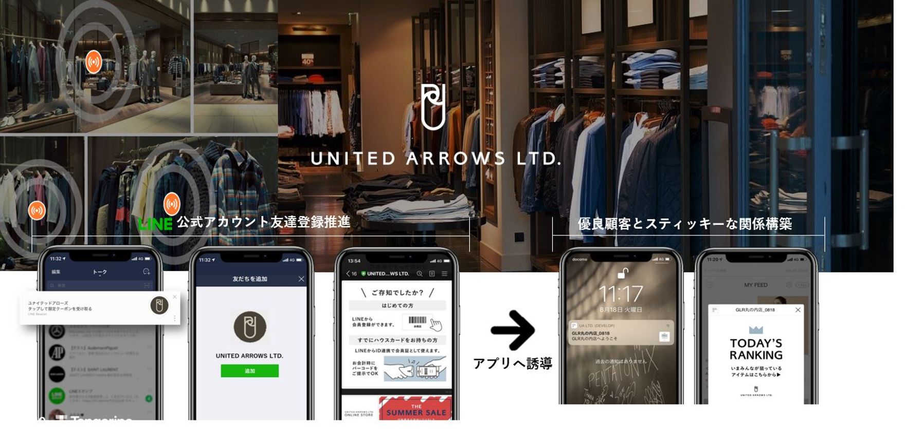 この度Tangerine株式会社(本社:東京都港区、代表取締役:平井清人、以下「当社」)が提供するリテールCXプラットフォーム「nearME™」が、株式会社ユナイテッドアローズ(本社:東京都渋谷区、代表取締役 社長執行役員 CEO:松崎 善則)が運用するUNITED ARROWS LTD. 公式アプリに導入され、2021年7月から全国の「UNITED ARROWS」・「BEAUTY&YOUTH UNITED ARROWS」・「Odette e Odile」など店舗ご来店のお客様に向けたコンテンツ配信を開始しました。