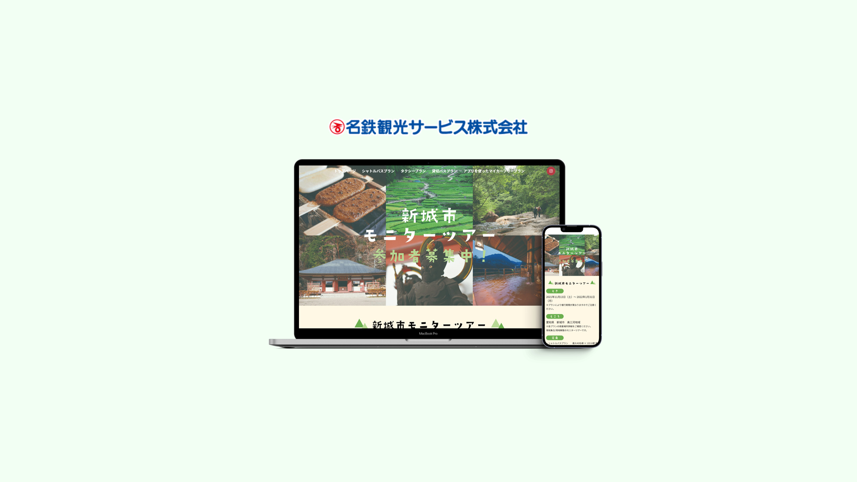 名鉄観光サービス株式会社様が地方創生の一環で愛知県新城市観光課と連携したモニターツアーの拡販の為のランディングページを作成いたしました。