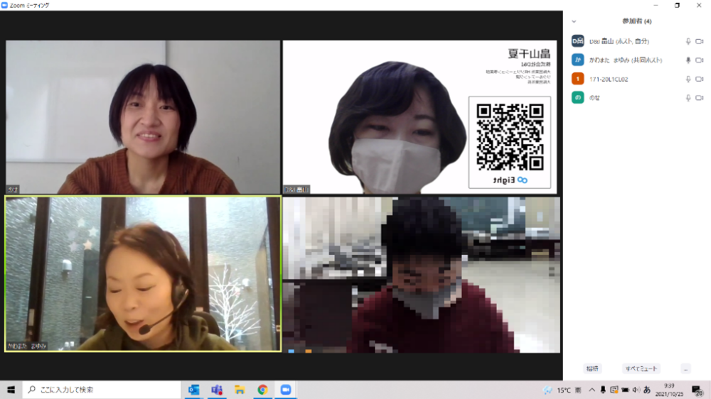 今回の実習では、オンライン面談ツール「Zoom」を活用し、チラシ制作会社の社員であるという設定のもと、&Iの社員とチームになってチラシを作成するという在宅勤務の体験をしていただきました。離れて働くからこそチームワーク良く働く事の難しさや大切さを実感していただける実習を目指しました。