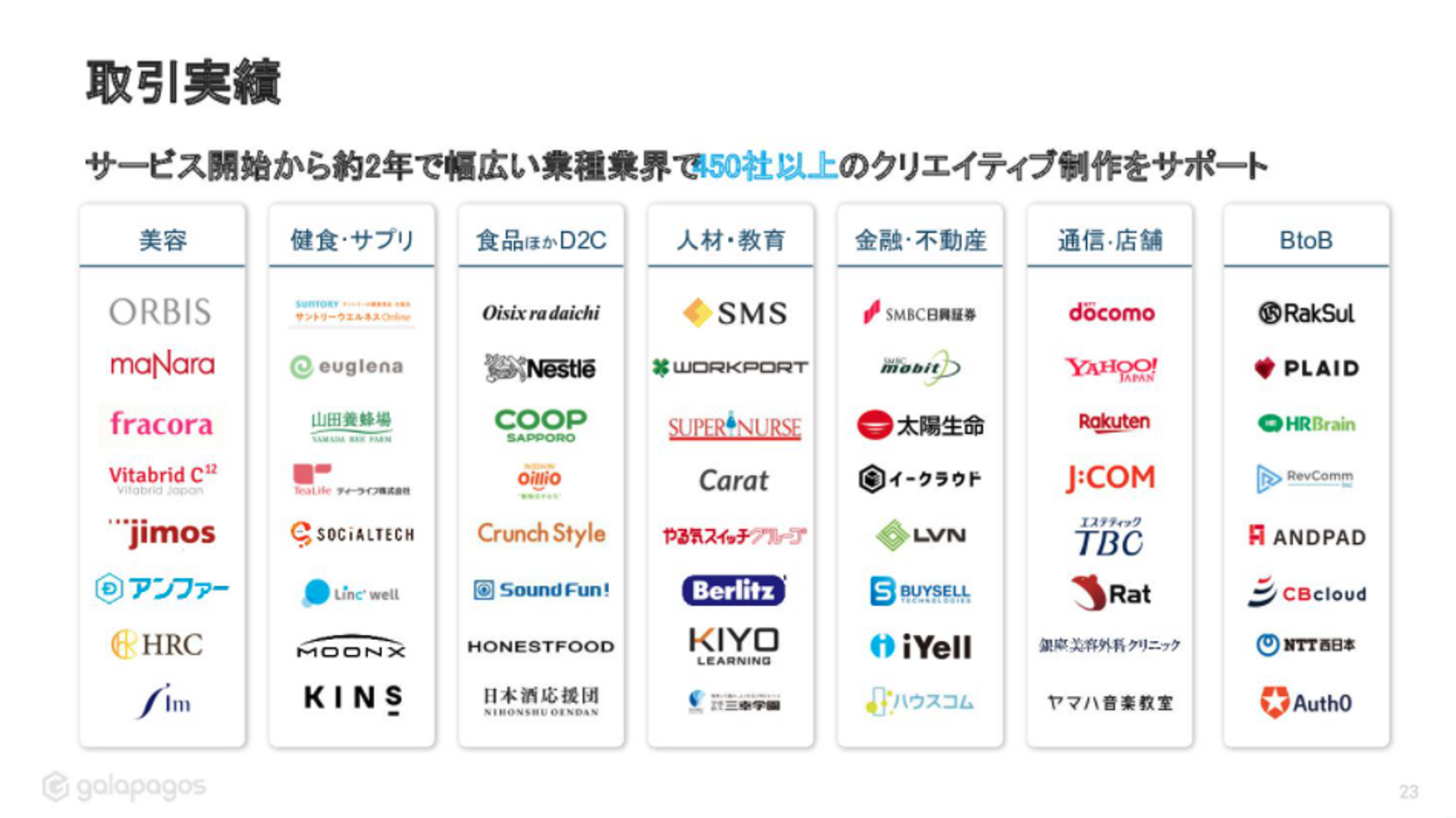 データ分析とプロセス改善で、成果に繋がるクリエイティブ(LP・バナー・動画)を高速で制作/改善できるサービス「AIR Design」を提供しています。高品質なクリエイティブ制作はもちろんのこと、緻密で正確なプランニングによって早期にKPIを改善可能なサービスです。2019年のローンチ以降、導入社数は右肩上がりに増加しています。
