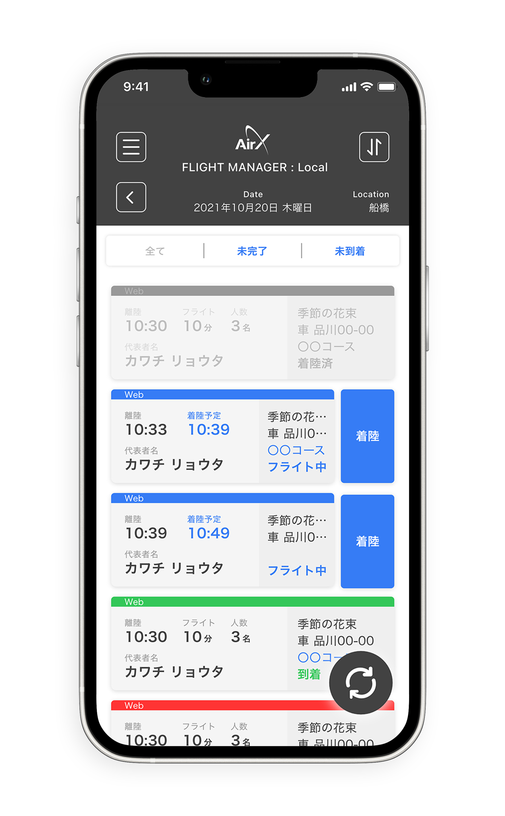 ◇ お客様のお客様が集合場所に到着しているかどうか、フライト完了したかどうかといったようなステータスをスマホ一つで管理できるシステムを開発いたしました。