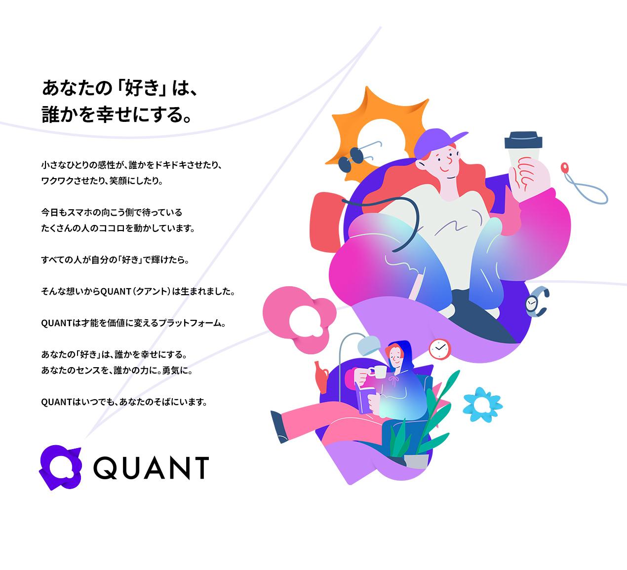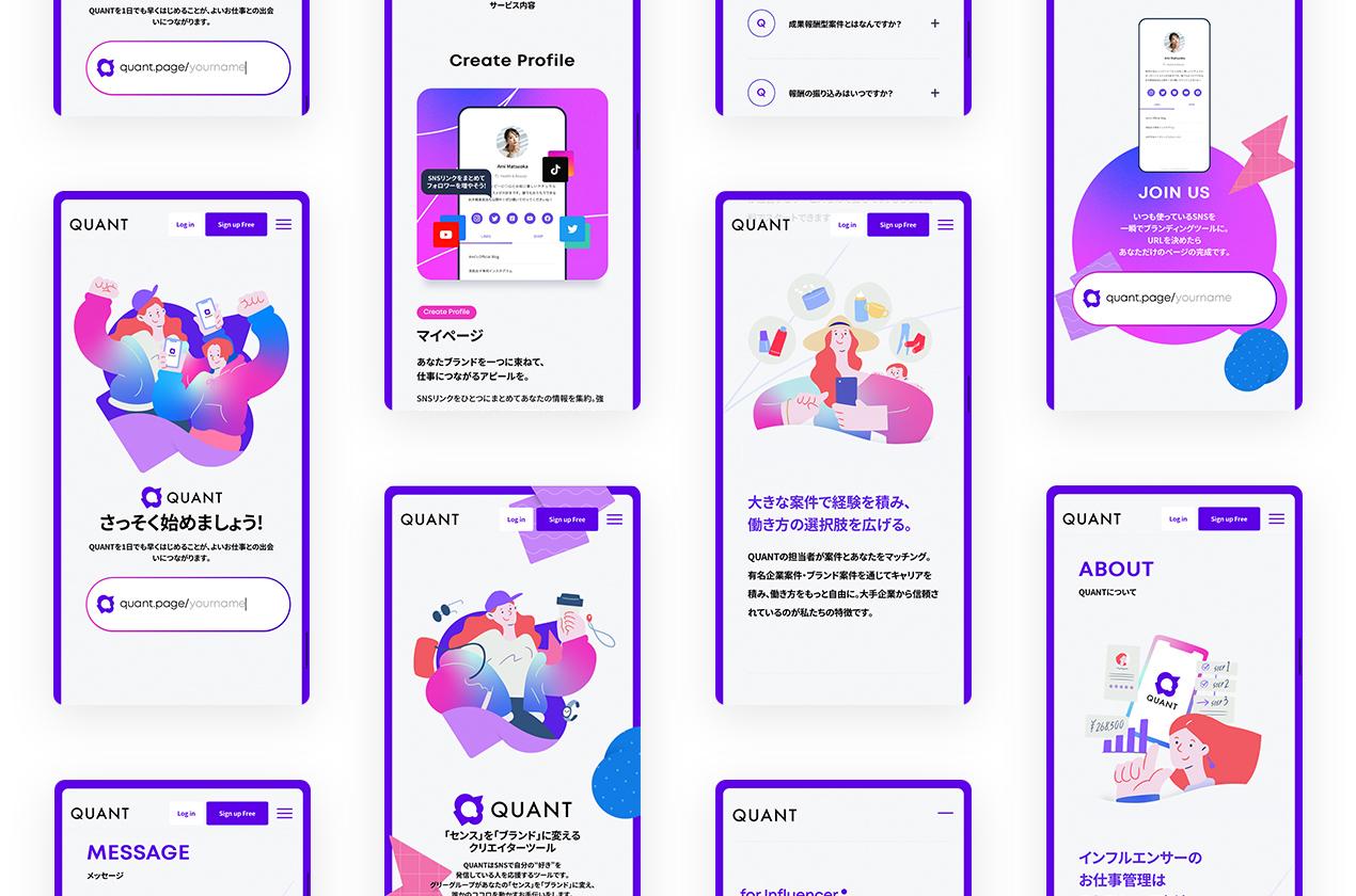 デジタルマーケティング支援を行なうGlossom株式会社(グリー株式会社100%子会社)が提供する、インフルエンサーマーケティングプラットフォーム「QUANT」。ハイライツではキャッチコピー、ステートメント、ロゴ、イラストレーション、WEBサイト、ガイドライン、パワーポイントのフォーマットまで幅広くリブランディングを担当しました。