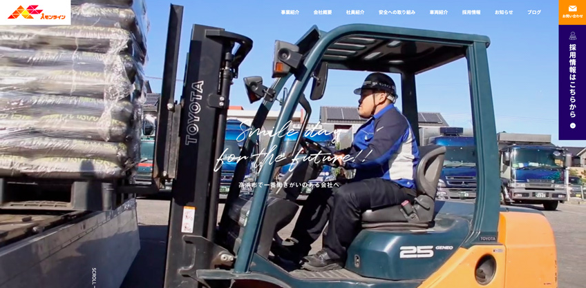 オレンジをメインカラーに設定 動画や車両一覧の画像を掲載することで、仕事風景の臨場感や迫力を表現しています。
