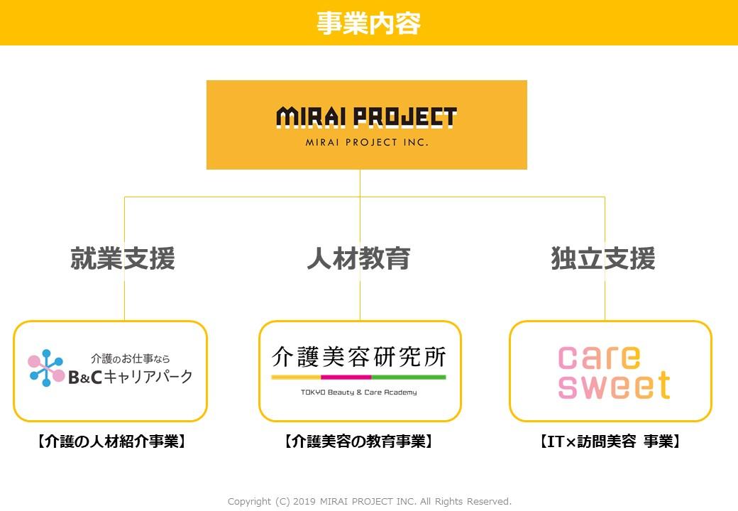 株式会社ミライプロジェクトは「介護×美容」をテーマにした会社です。