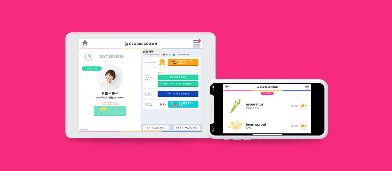 GLOBAL CROWNは3〜12歳を対象にしたマンツーマンで学べるオンライン英会話スクールです。