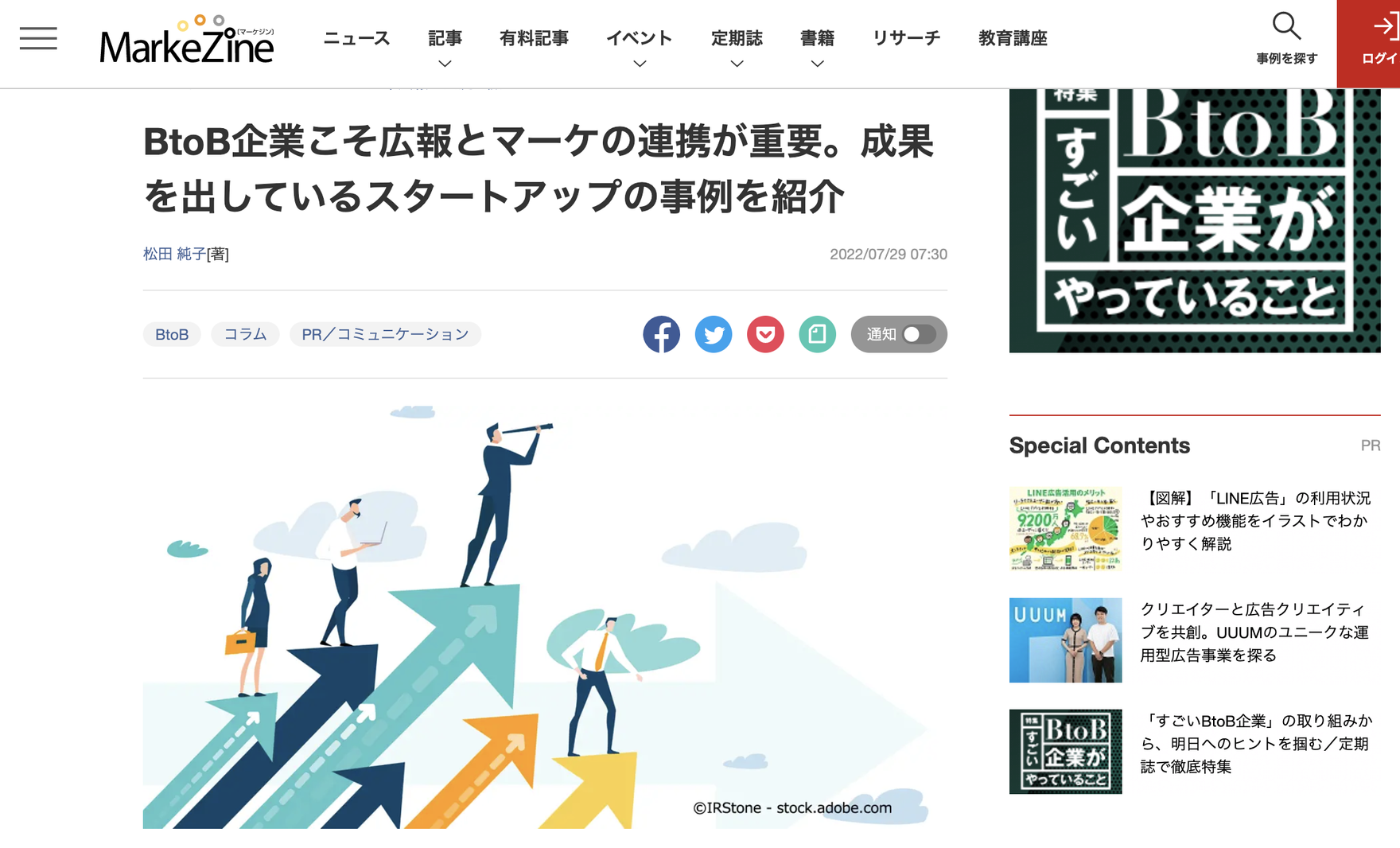 ▼ BtoB企業こそ広報とマーケの連携が重要。成果を出しているスタートアップの事例を紹介 https://markezine.jp/article/detail/39519