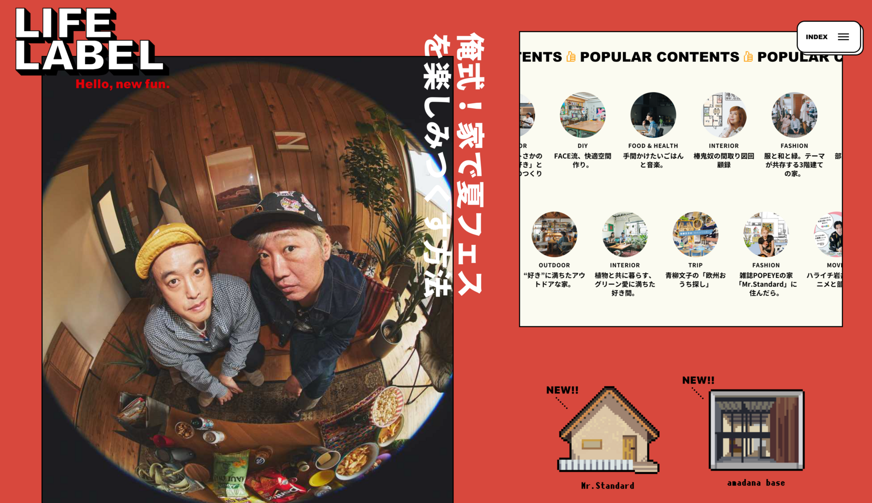 住宅ブランドに収まらず、暮らしを楽しむためのきっかけやアイデアを発信する「LIFE LABEL」。「HOUSE IS ENTERTAINMENT」をテーマに再スタート。インテリアやファッション・車・音楽・映画など、さまざまなジャンルを切り口に、家時間を楽しむためのライフスタイルを提案するブランド兼メディアサイト、雑誌などの制作を一式担当しています。