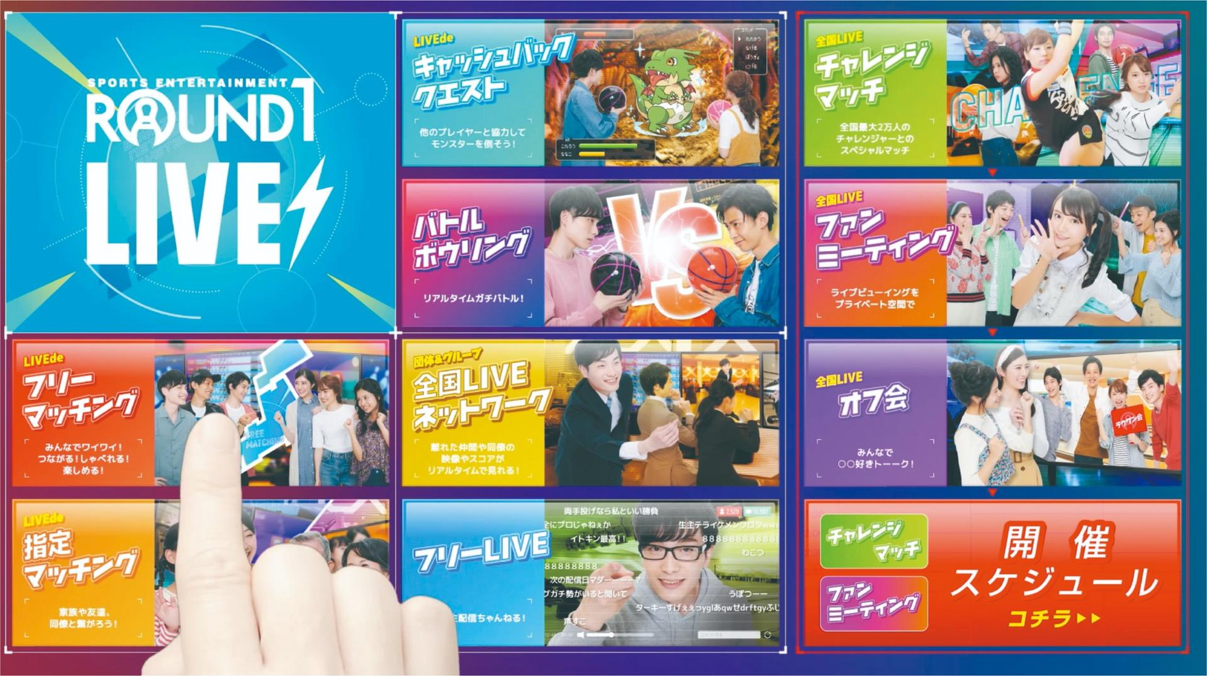ボウリング・カラオケを中心としたエンターテイメント施設「ROUND1」が全く新しい通信システム「ROUND1 LIVE」を始動させる、ということで認知のためのコンテンツ説明動画・実際に店舗で使用するタッチパネルのデザインを依頼されました。