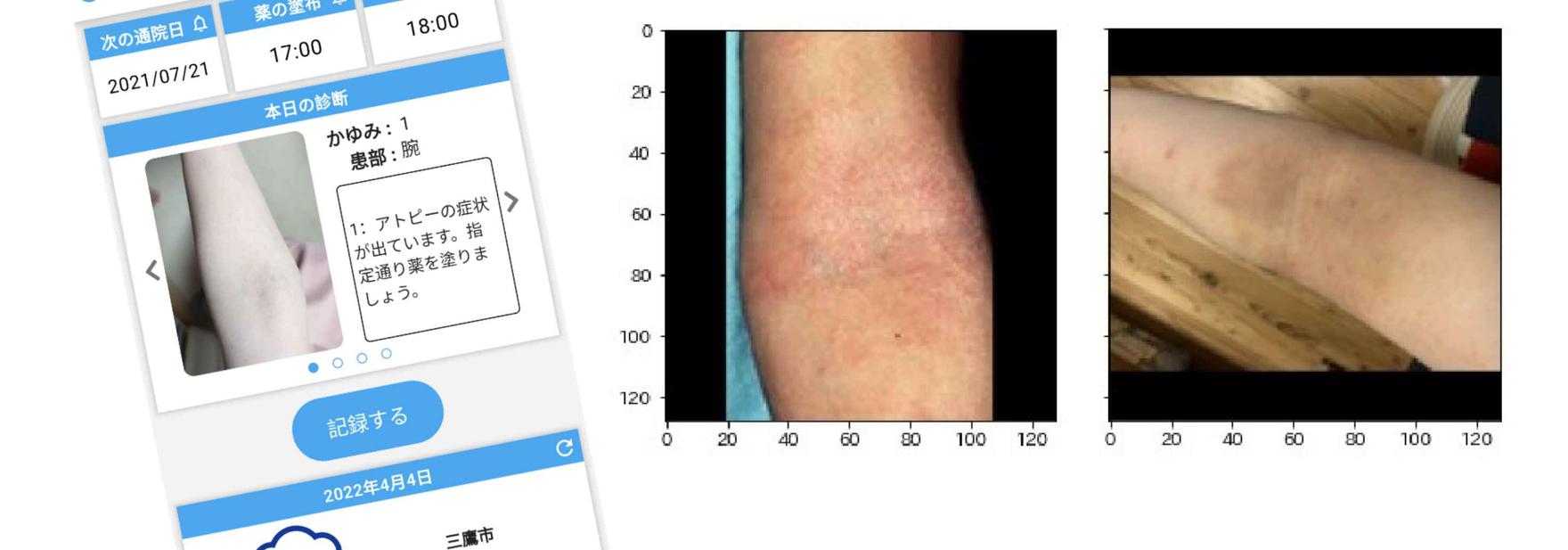 皮膚画像データをベースにアトピー症状のリスク判定とスクリーニングを行うAIの開発を行いました。アプリでは記録、経過観察を医師と共有することが可能です。