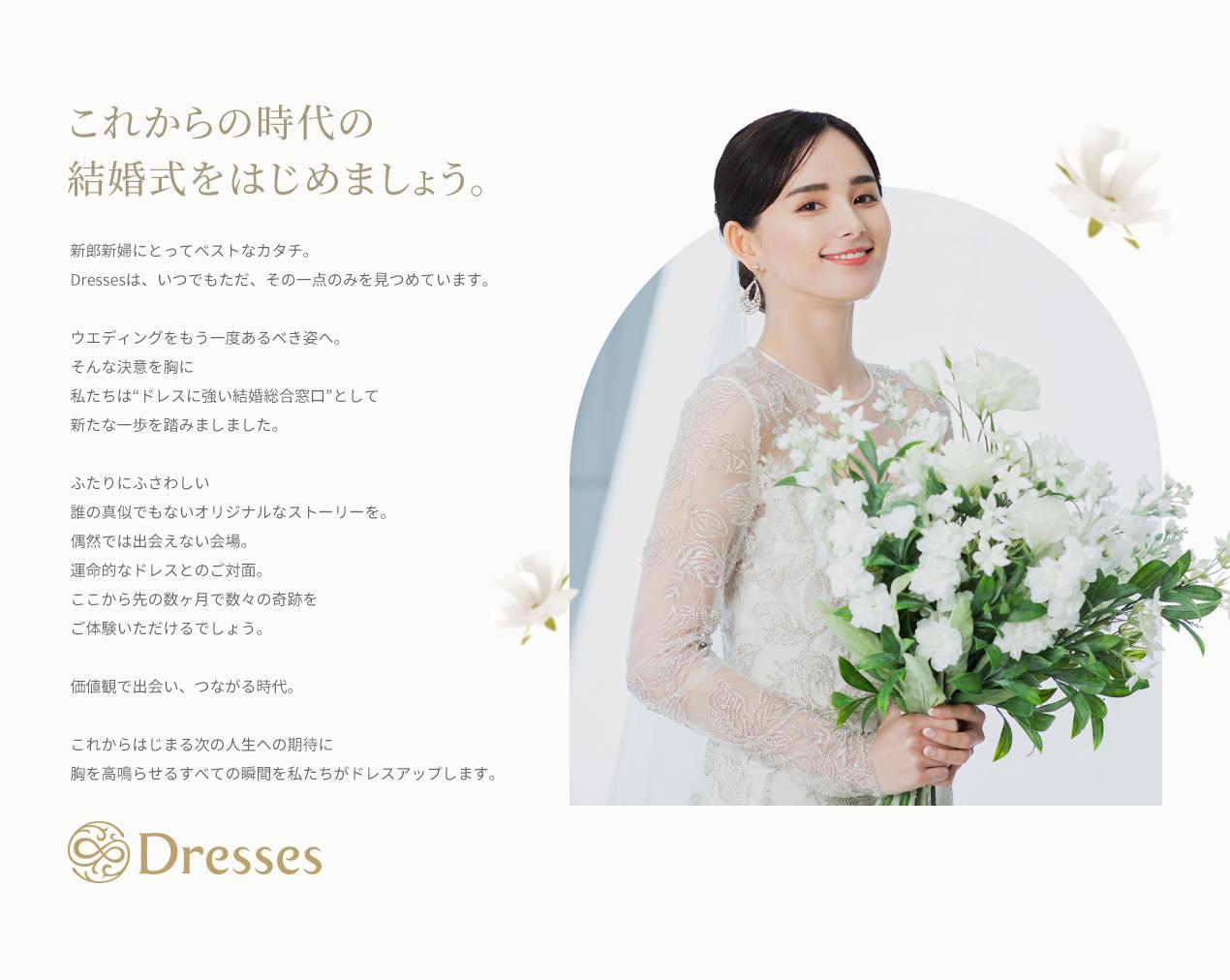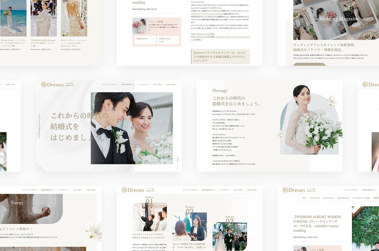 福岡を拠点にウェディングドレスショップを全国へ展開しているDress the Life(渕上ファインズ) が提供する、結婚総合窓口「Dresses」。ハイライツではリブランディングを担当しました。社員へのヒアリングから、サービスが提供する価値を言語化。それを元に、ロゴ、ガイドライン、WEBサイトの制作と、撮影のディレクションを行いました。