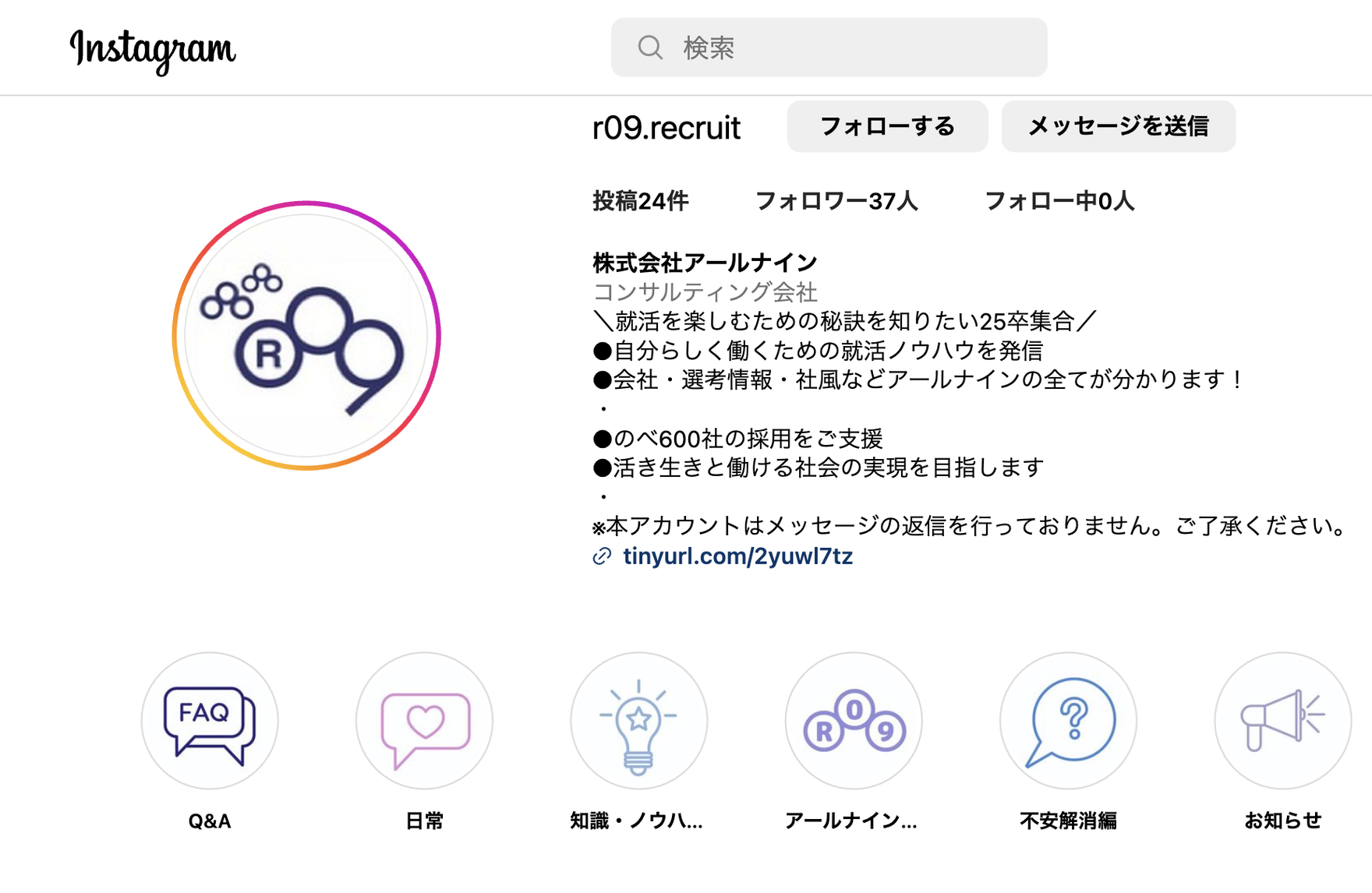 主に新卒学生に対してアールナインの事業内容や就活そのもののノウハウについて発信しています。