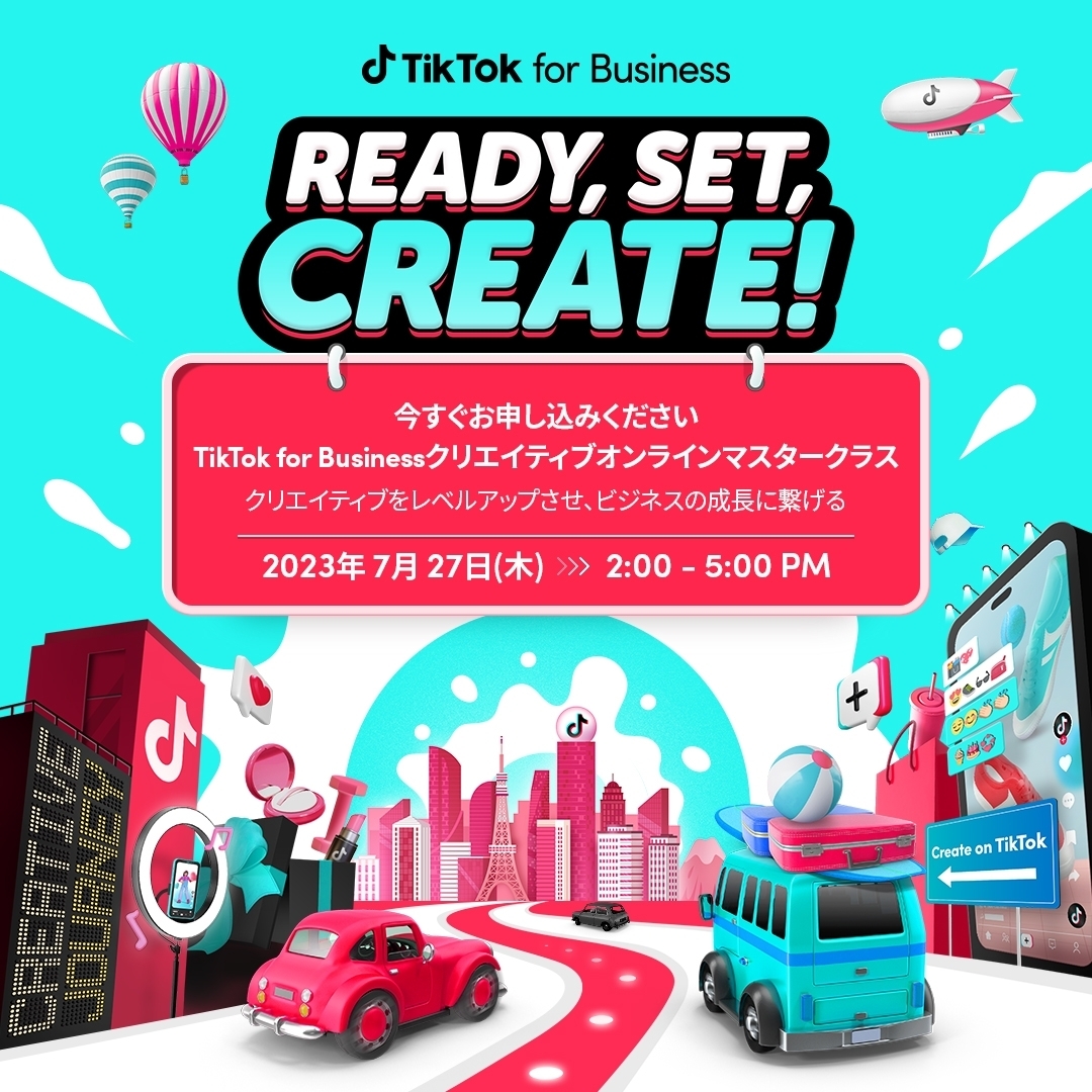 TikTok for Businessが提供するクリエイティブジャーニーを体験できる【Ready, Set, Create! TikTok】オンラインマスタークラスが、7/27(木)14:00〜17:00に開催されます。