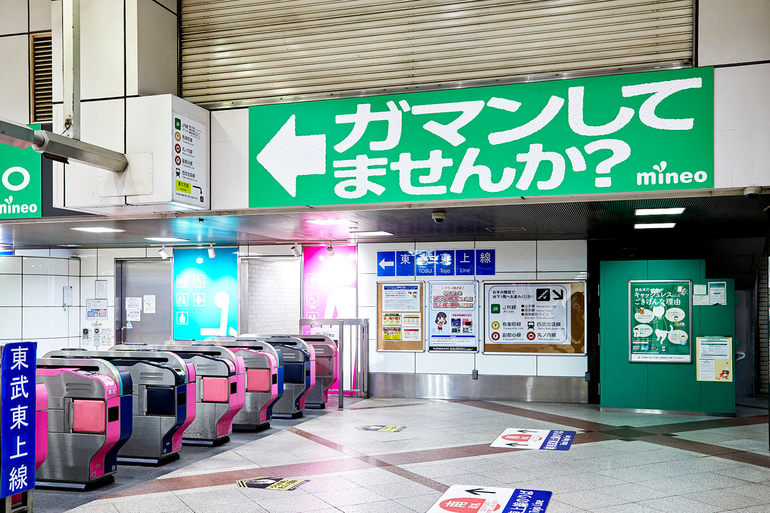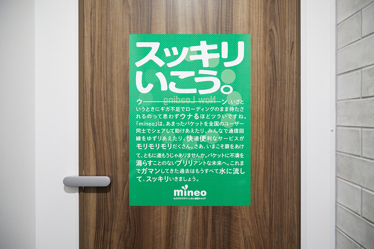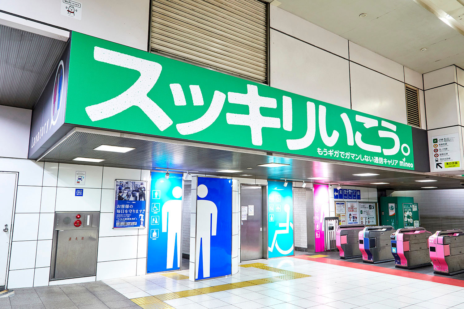そんな「もうギガでガマンしない通信キャリア mineo」の良さを伝えるべく、ガマンしている人の多い駅トイレに広告を掲出しました。
