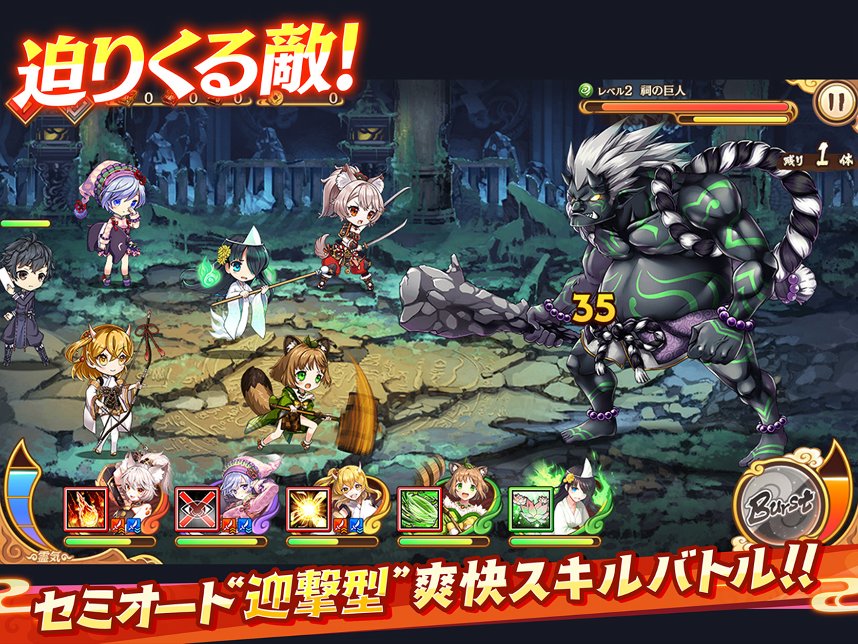 迫りくる敵を奥義スキルを使って迎撃する新しいシステムの爽快バトルが楽しめます。