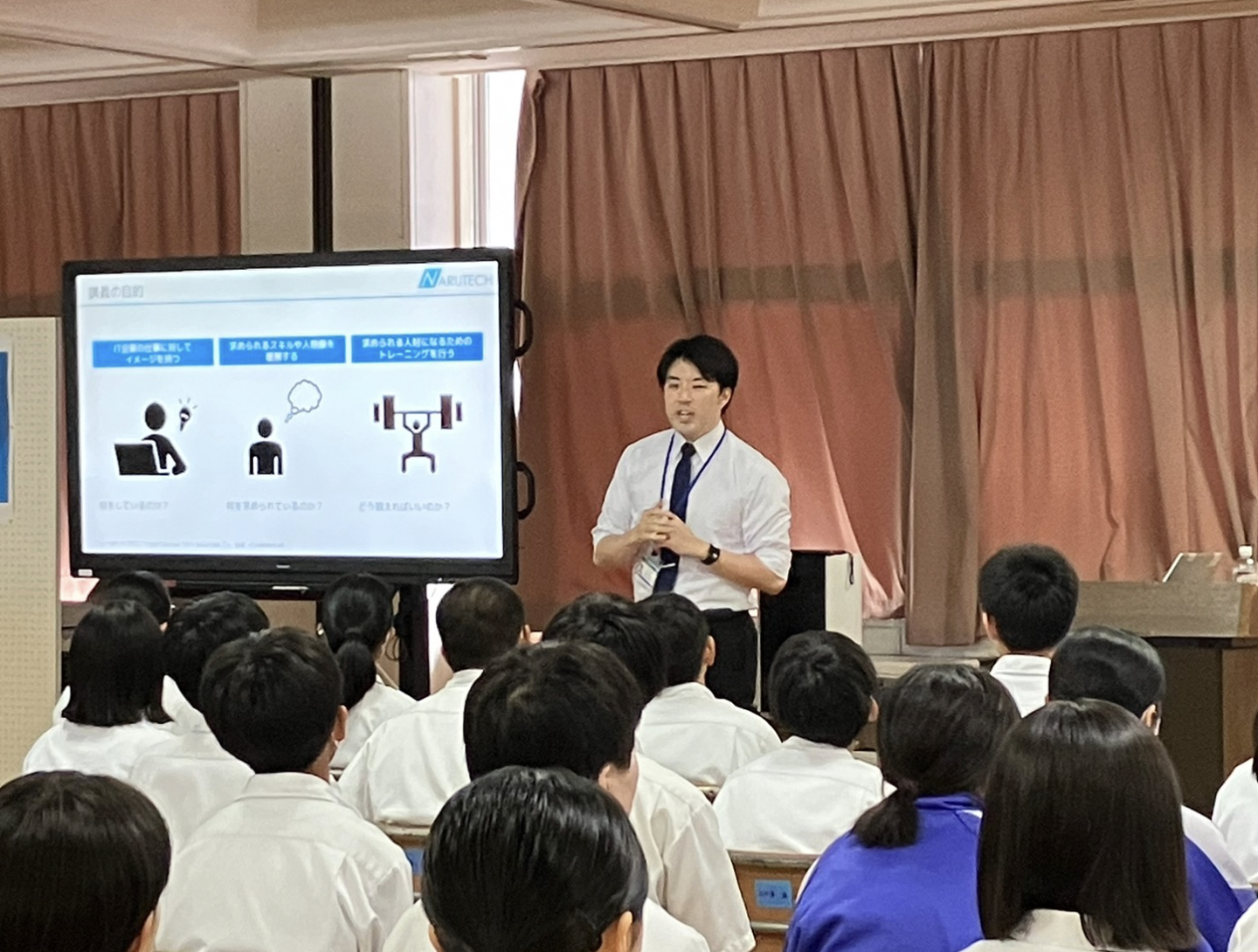 2023年6月29日に聖霊女子短期大学、7月1日に仙北市立角館中学校にて、弊社社員の高橋 明史を講師とした「ICT企業出前講座」が開催されました。