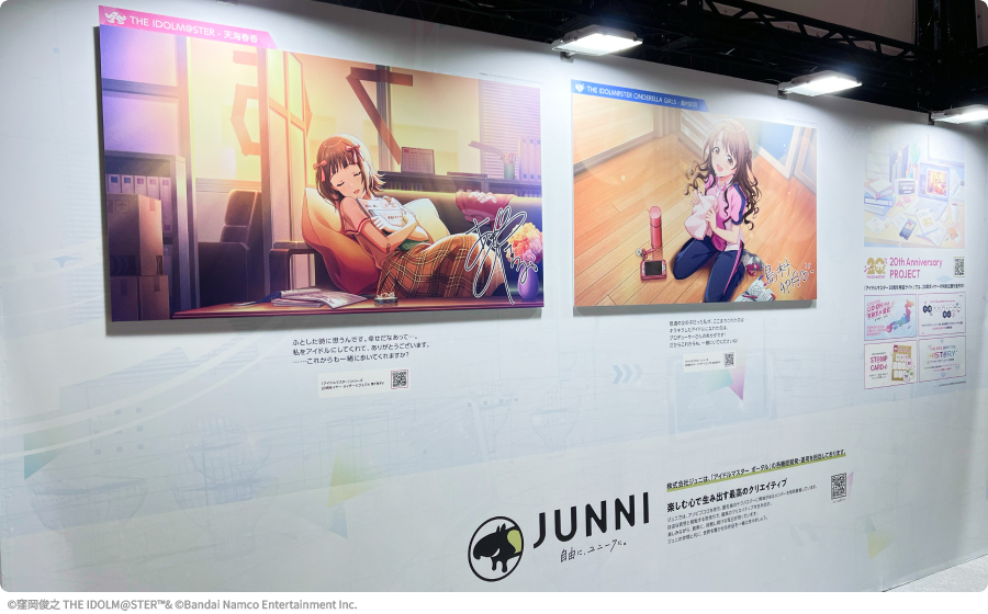 アイドルマスター20周年に先駆けて開催された「THE IDOLM@STER M@STER EXPO」にジュニが協賛いたしました。さらにジュニで企画・開発しているサイト「アイドルマスター ポータル」の公式ブースを出展いたしました。