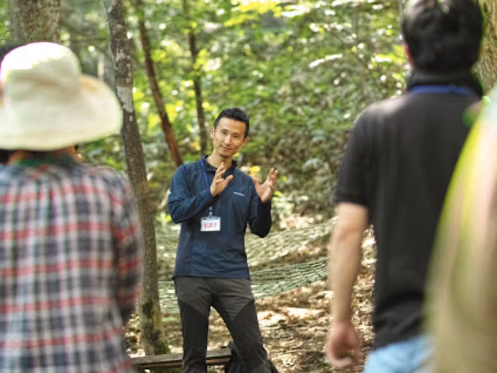 武蔵野大学ウェルビーイング学部との連携で、村内の恵まれた自然環境を生かし、対話を基礎としたマインドフルネス・リトリート企画。ダイアローグ(対話学)の第一人者であり、武蔵野大学ウェルビーイング学部准教授を務める中村一浩氏をお招きして、森のなかで心身ともに自己を整え、他者との対話を紡ぎだしていきます。