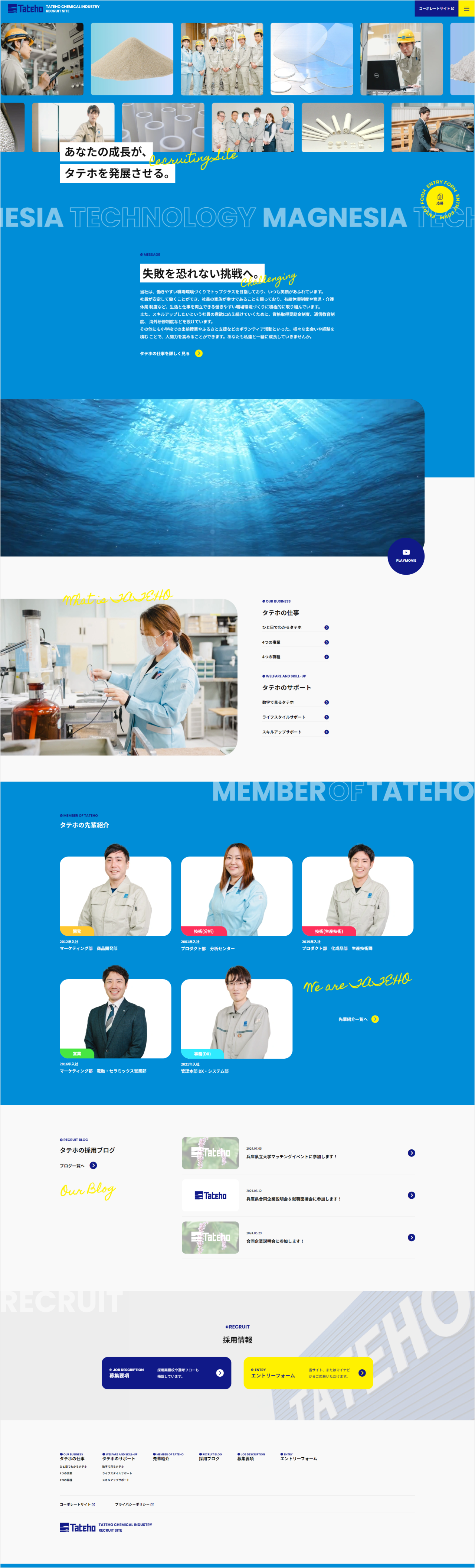 技術者採用に力を入れたいというご依頼で、タテホ化学工業株式会社様の採用サイトを制作しました。