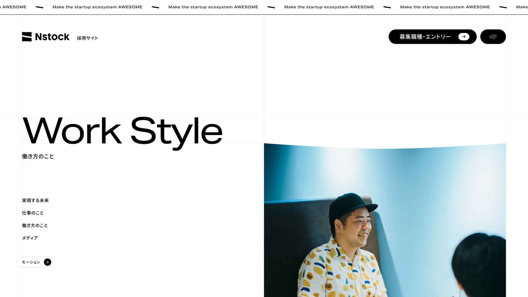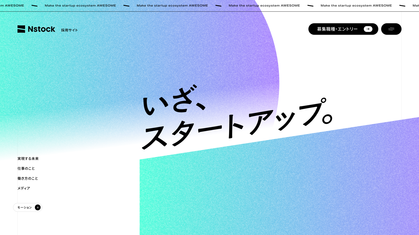 スタートアップが大きく育つためのプロダクトや、成長のボトルネックを解消するためのプロダクトを提供する、Nstock株式会社の採用サイトを制作しました。30億円の資金調達に合わせてサイトをフルリニューアル。スタートアップとともに走り続ける同社の姿勢を表現するコピー、グラフィックの制作をはじめ、UIデザイン、フロントエンド開発およびCMS構築を担当。ウェブアクセシビリティにも高いレベルで対応しています。