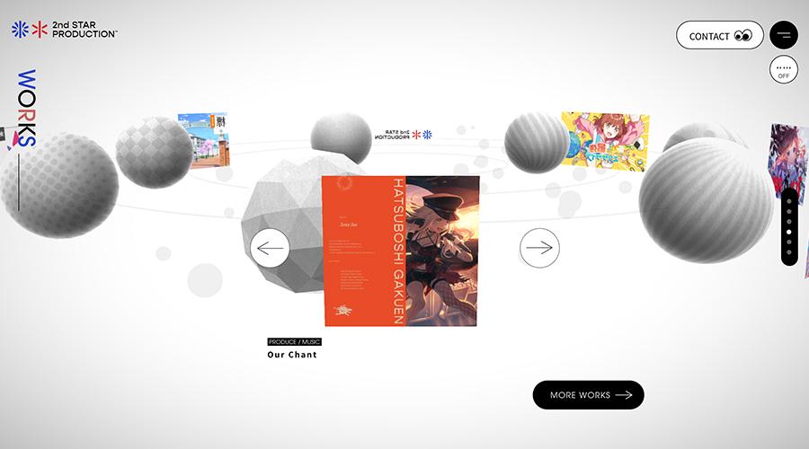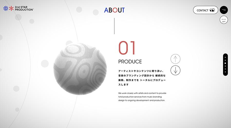 「音で、世界をもっとおもしろく。」をビジョンに掲げるクリエイティブカンパニー2nd STAR PRODUCTION™。その企業メッセージや音楽プロデューサー佐藤貴文氏のアソビゴコロを表現するために、タグラインの「寄り添い、ともに輝く」からインスピレーションを得て、スターの周りを巡る惑星をイメージしたデザインに。さらにロゴアニメーションの制作や、佐藤貴文氏がサイトのために創作したBGMを流すなど、ビジュアル/サウンド表現にこだわり視覚/聴覚の両方に訴えるサイトへと仕上げました。