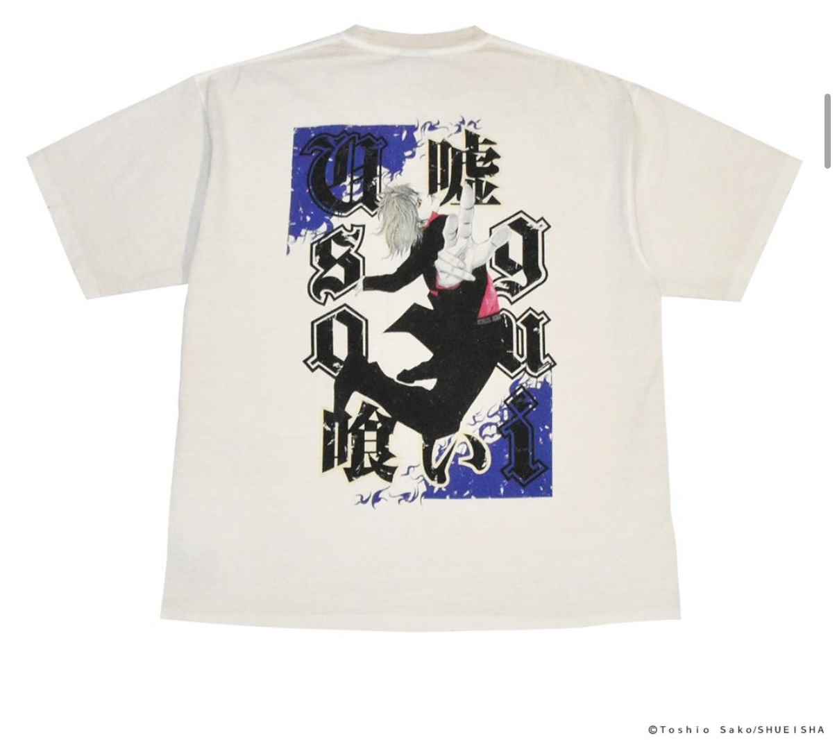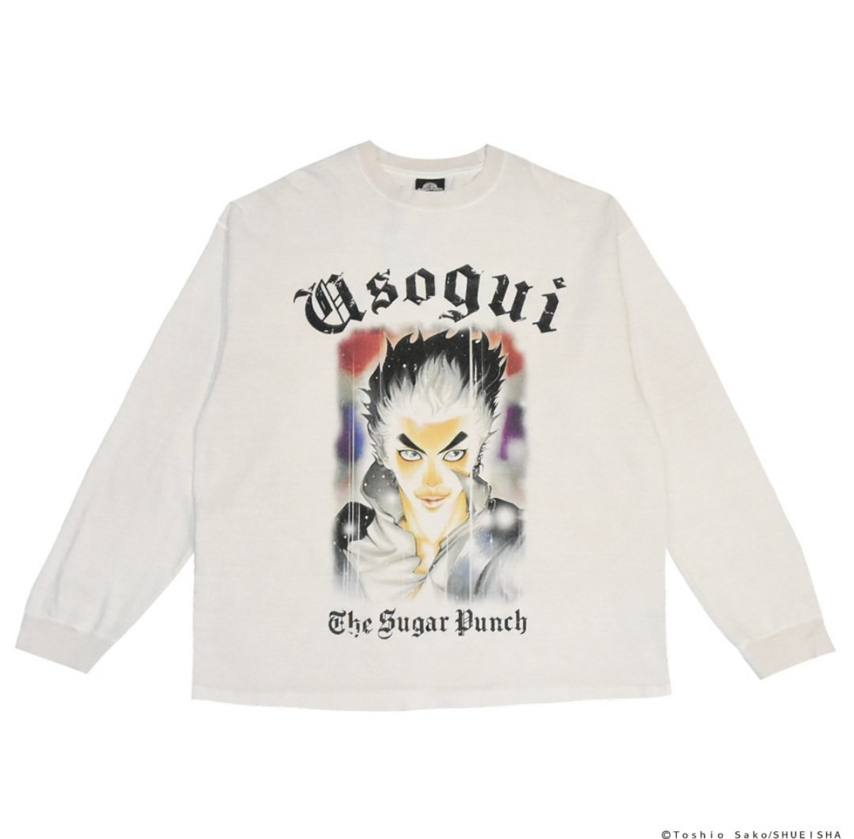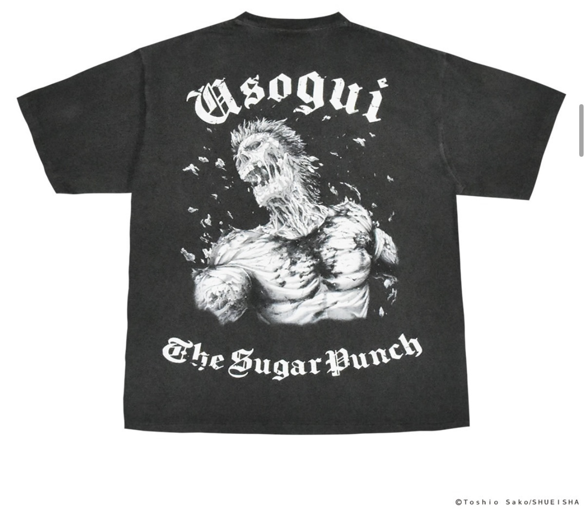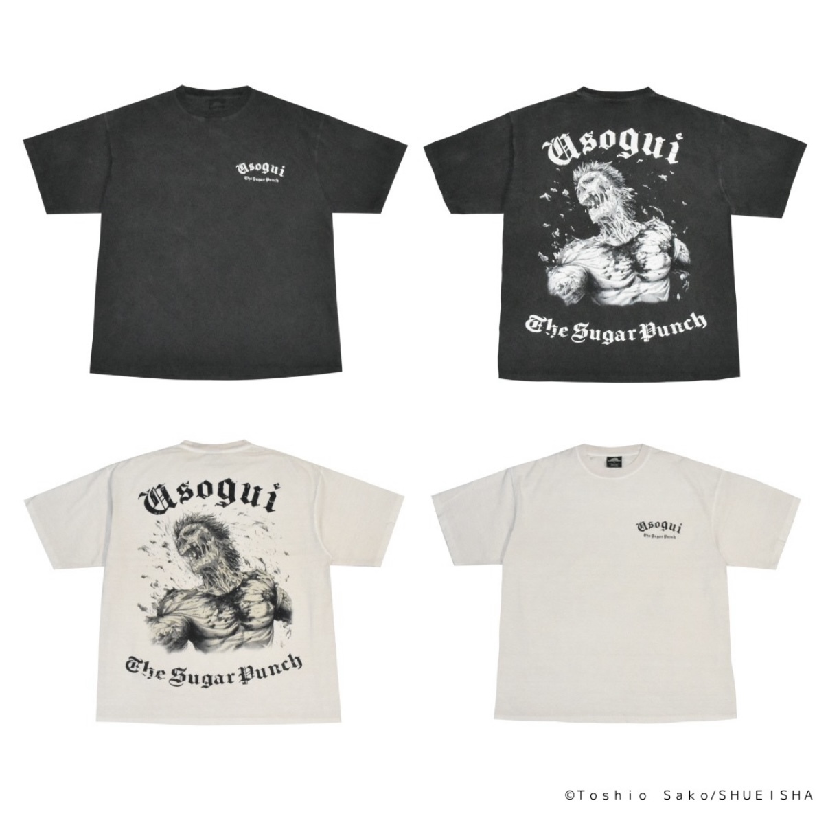 嘘喰い内で最強の呼び声高い、賭郎の元零號立会人である"伽羅(きゃら)"の命の躍動を感じるパンチアートを使用したグラフィック。生地、縫製、サイズにこだわった日本製のボディにヴィンテージ加工を施し、プリント手法もヴィンテージの再現にこだわり抜いたプリントを施しています。