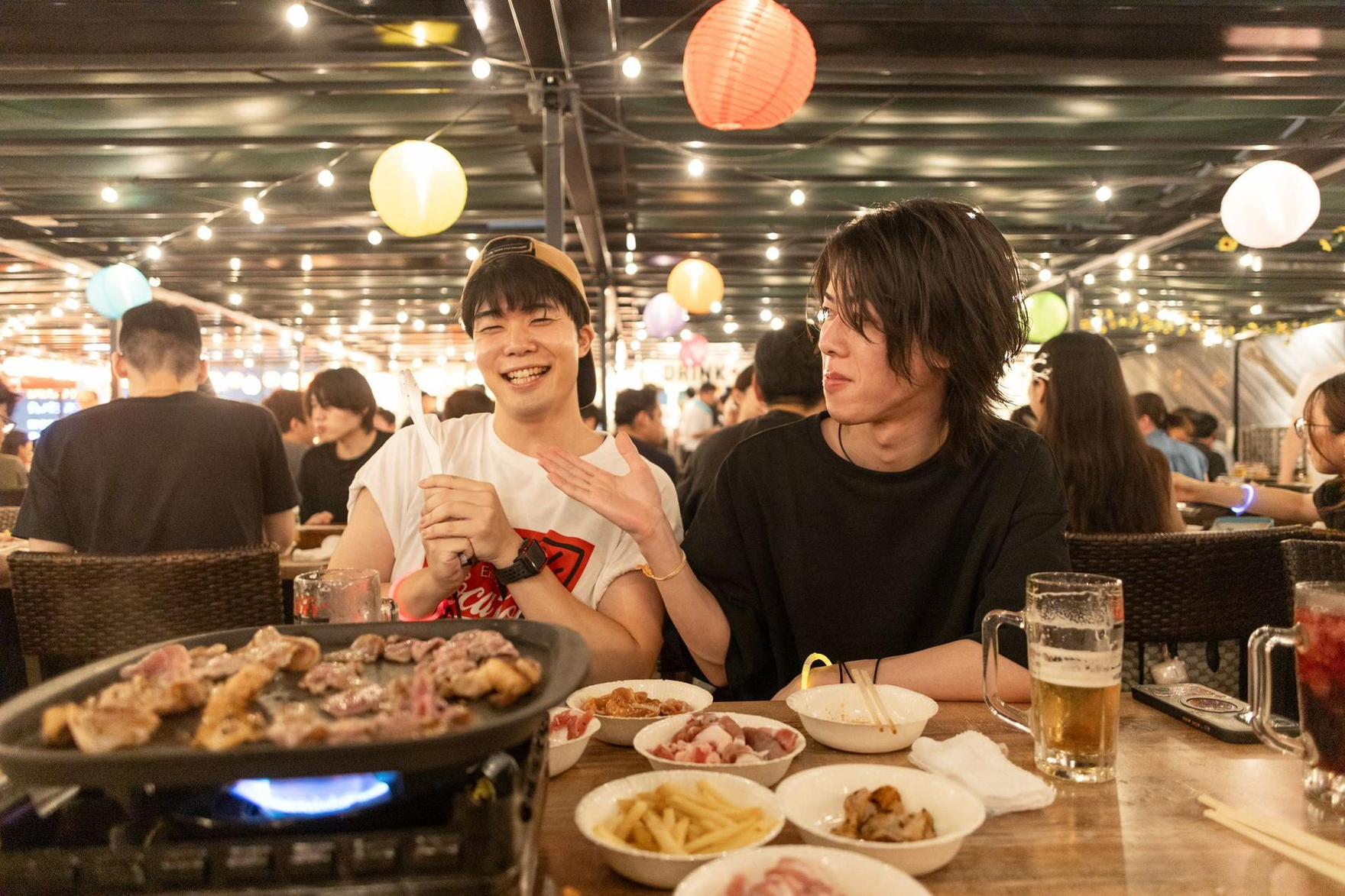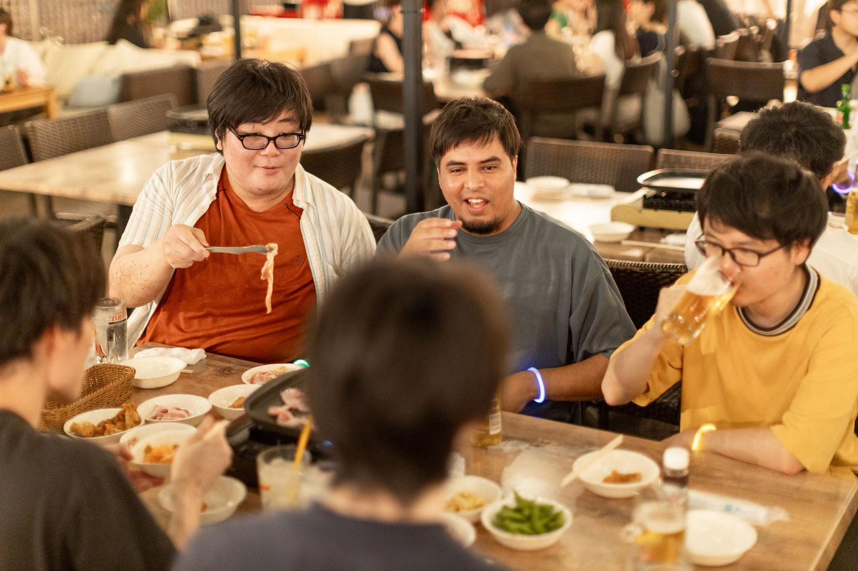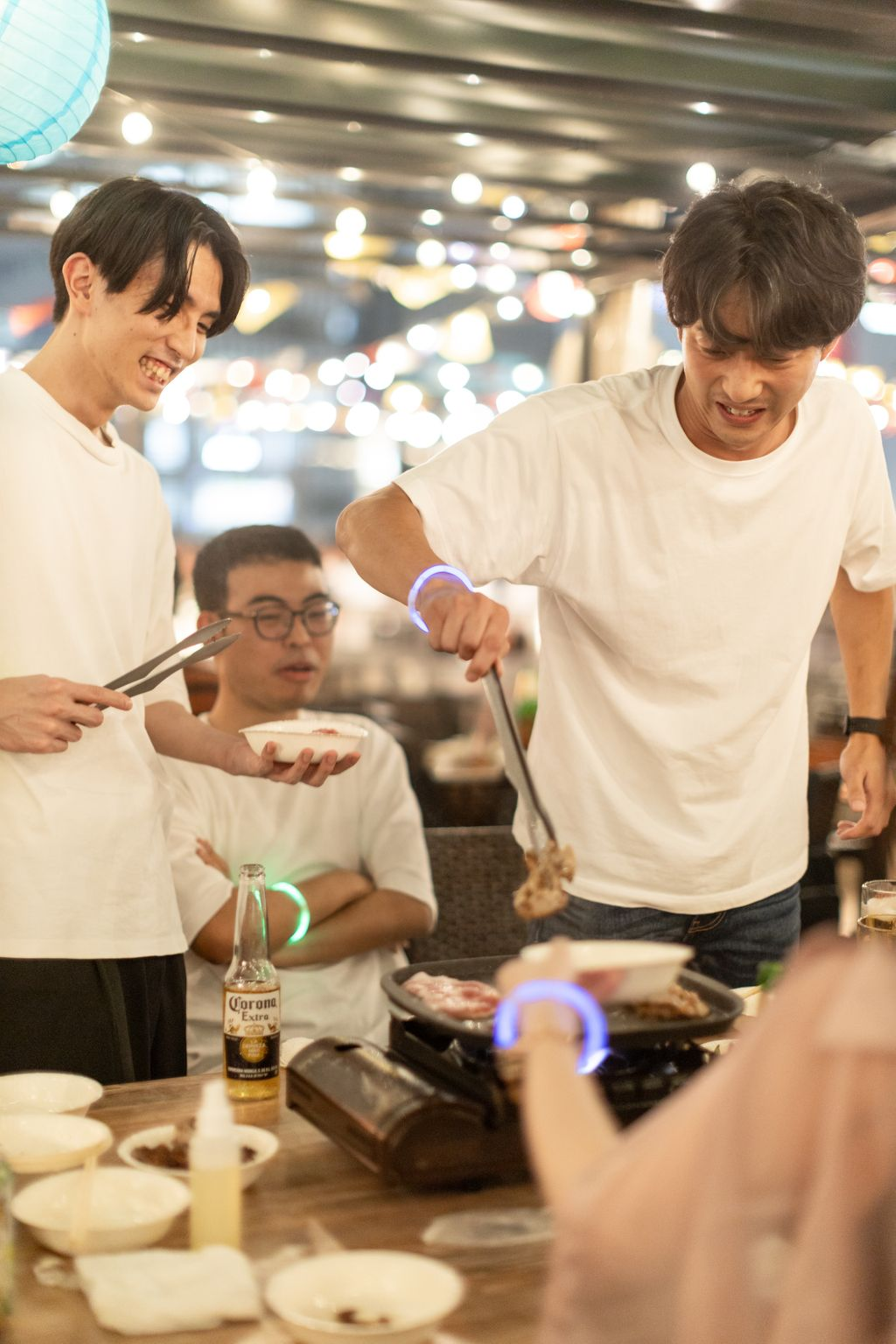 アーザス社員のしるしとして、腕に光るブレスレットをつけてもらっています。