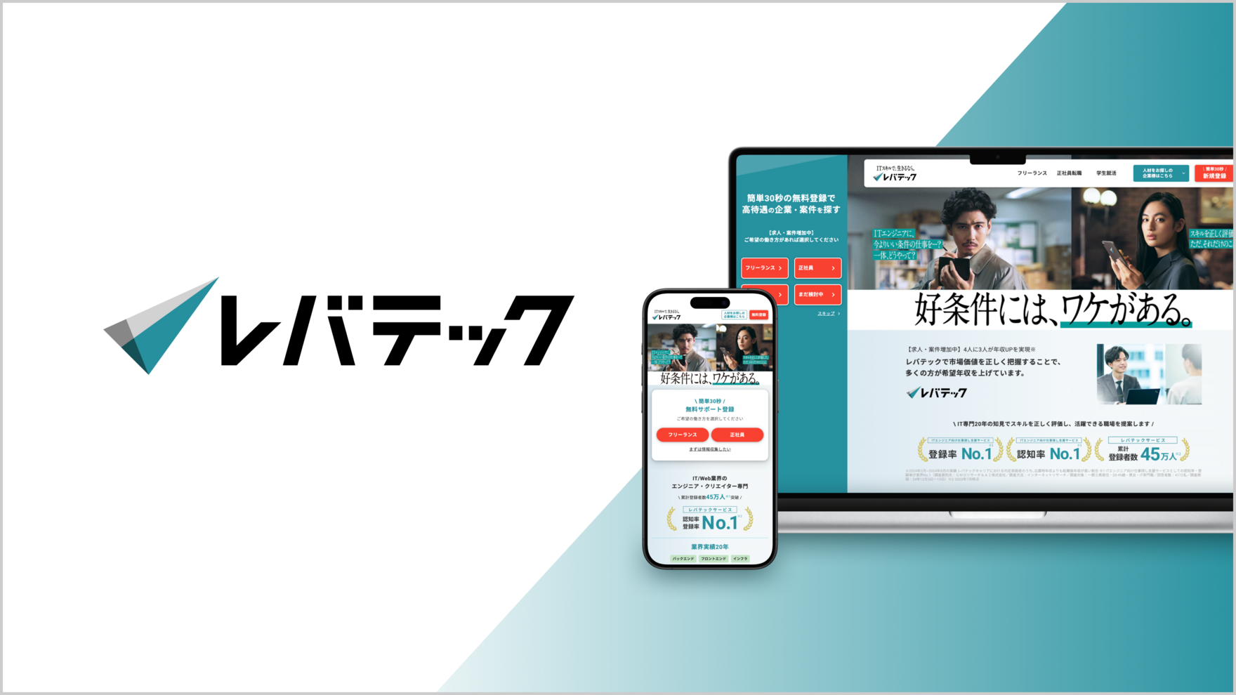 レバテックは「日本を、IT先進国に。」をビジョンに掲げ、業界最大規模のITフリーランスの参画支援「レバテックフリーランス」を中心に、正社員転職支援「レバテックキャリア」、学生向け就職活動支援「レバテックルーキー」など、各年代・キャリアに応じた様々なサービス展開しています。