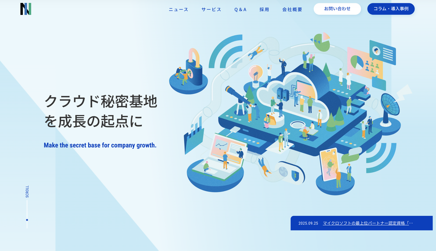 企業のデータ基盤構築、BI環境構築、AI活用やセキュリティ対策など、DX化を通じてビジネスを支援する<クラウド秘密基地>サービスを提供する、ネクストリード株式会社のコーポレートサイトを制作しました。