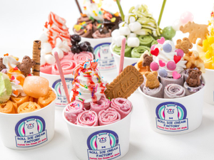お好みのアイスクリームのベースにフルーツやスイーツを混ぜ込み、 くるくるとロールアイスクリームを仕上げたら、 トッピングとソースをデコレーションして完成です。  6種類のアイスクリームベースと、20種類のミックスイン、 40種類以上のトッピングをカスタマイズすれば、 食べるたびに違うフレーバーを無限大に楽しむことができます。
