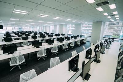 2025年4月に三田オフィスに移転しました。広々とした新オフィスでは領域を超えた横断的なコミュニケーションが活発です。