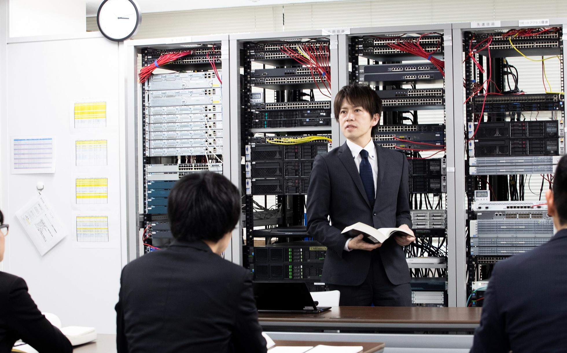 やはりネットワーク設計は実機に触れるのが一番!社員が積極的かつ、能動的に学べるアクティブラーニングな環境が当社にはございます。