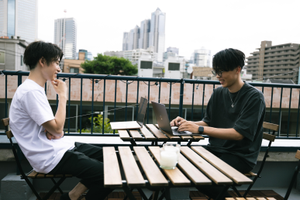 クリエイティブのディスカッションをする様子。クライアントの商品をどう魅力的に見せるかを話し合っています。