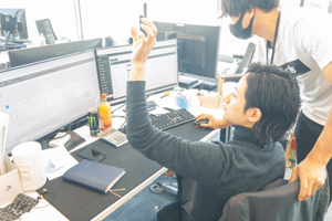 クリエイティブ制作チームに運用結果の報告と、分析した内容を伝えている様子。チームごとに連携して広告の効果改善を行っていきます。