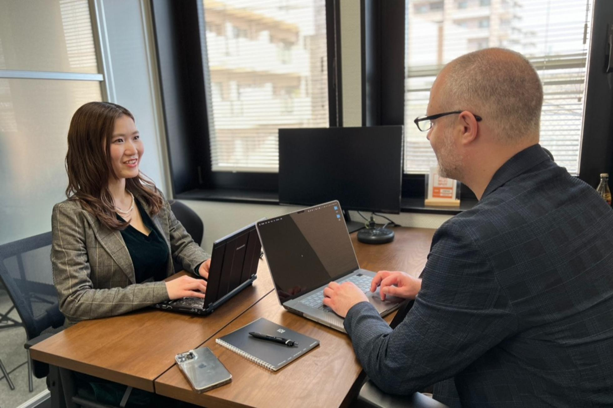 社内では日本語と英語が飛び交うような形でコミュニケーションをとっています。各々がインプットした情報を共有し合ったり、担当案件に関わらずアイデアや意見出しをして力を合わせます。