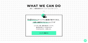 「動画制作をもっと安く、大量に」をコンセプトにした動画制作サービスです。