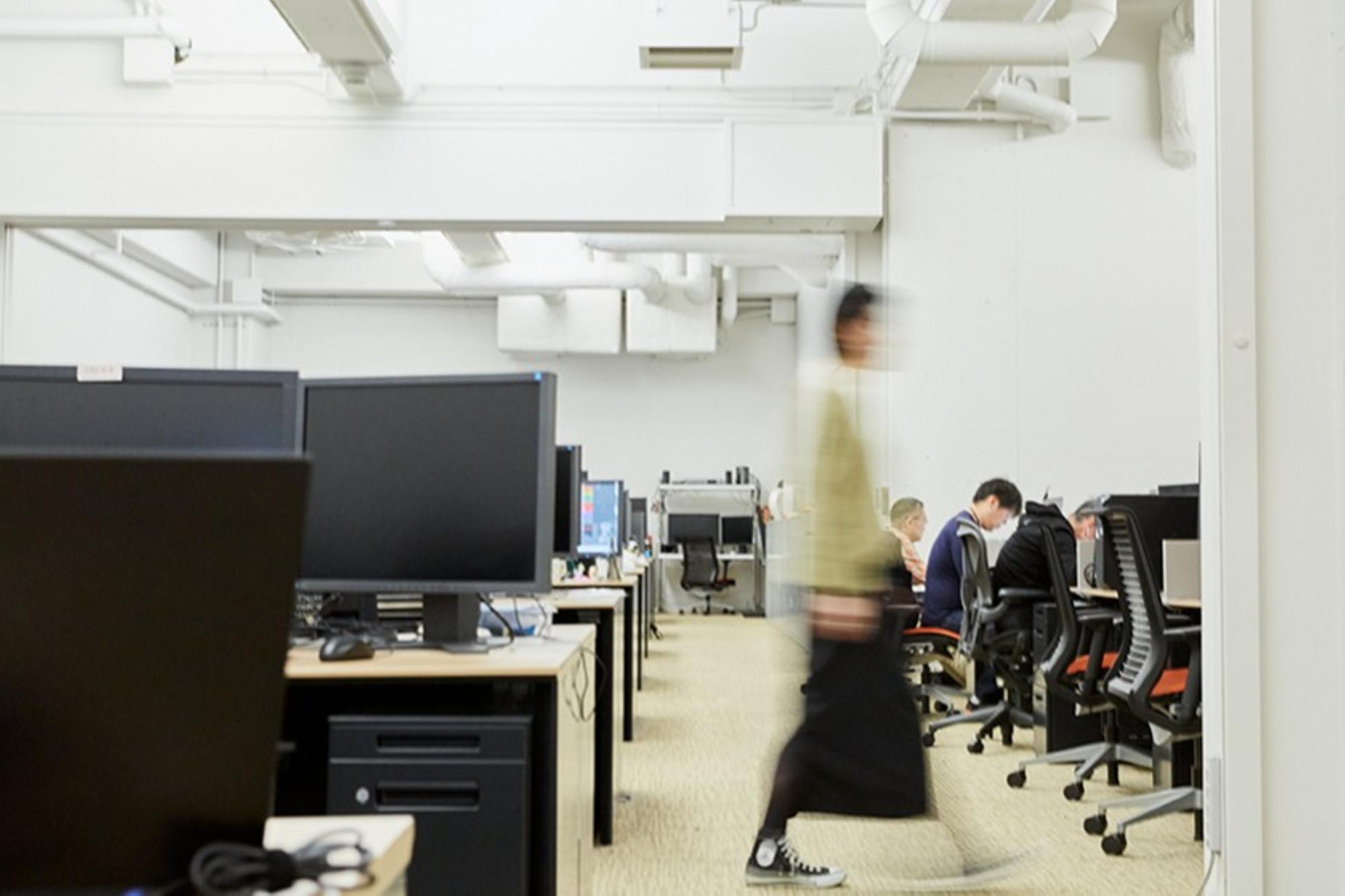 オープンでクリエイティビティを刺激する開放的なオフィス。フリーアドレスのため働く場所は毎日自由です