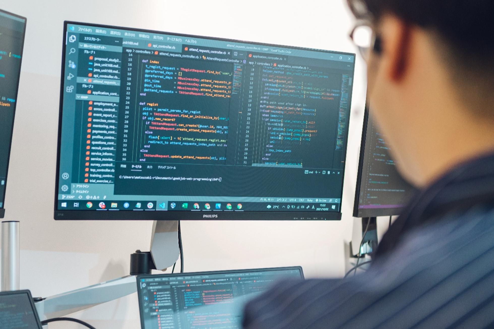 大学時代は歴史学を選考し、前職はスーパーマーケットの店員、 現在はグルーヴ・ギアで教育、及び開発関連業務に従事しています。 自分と同じ境遇の方々である、 「未経験からエンジニア」になろうと決意した方を全力で支援するために日々奮闘しています。